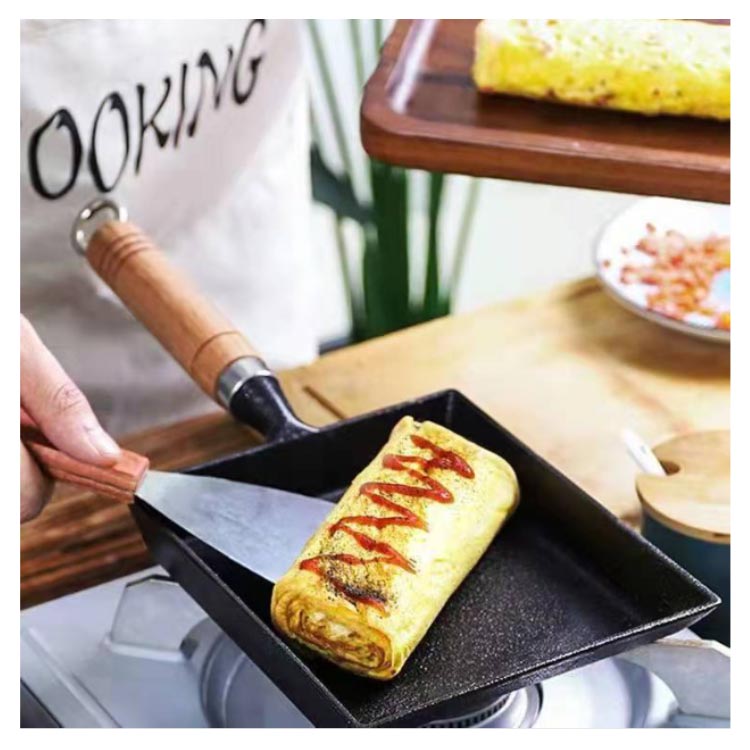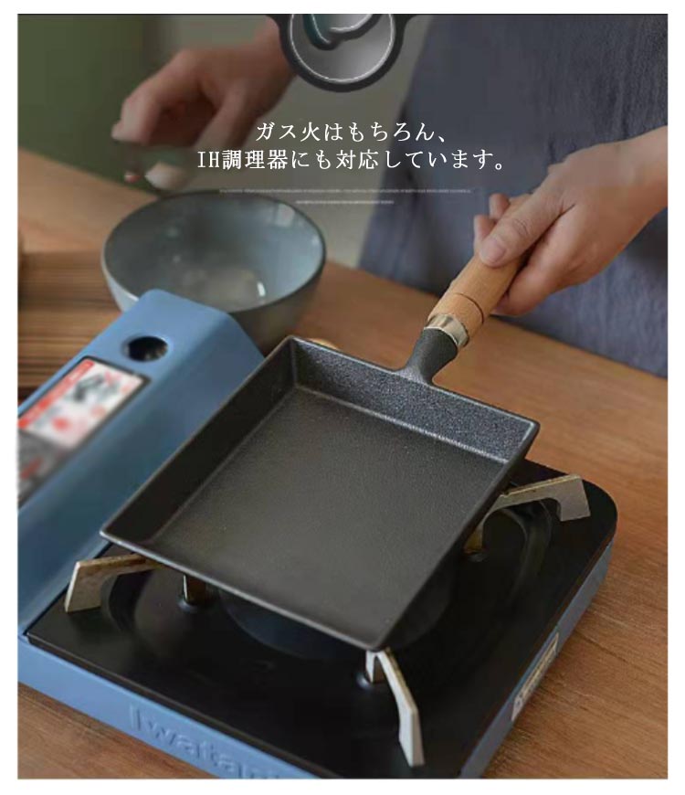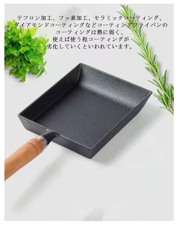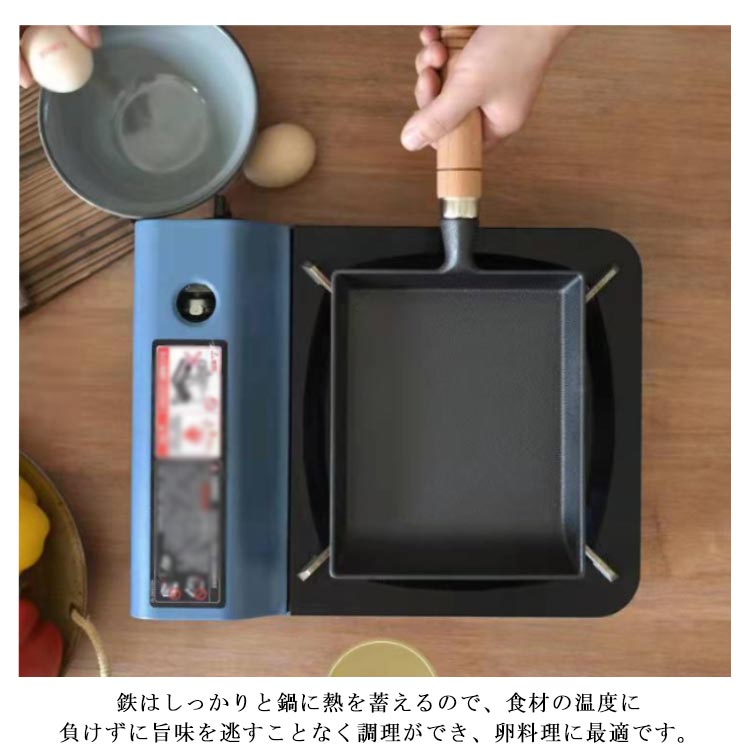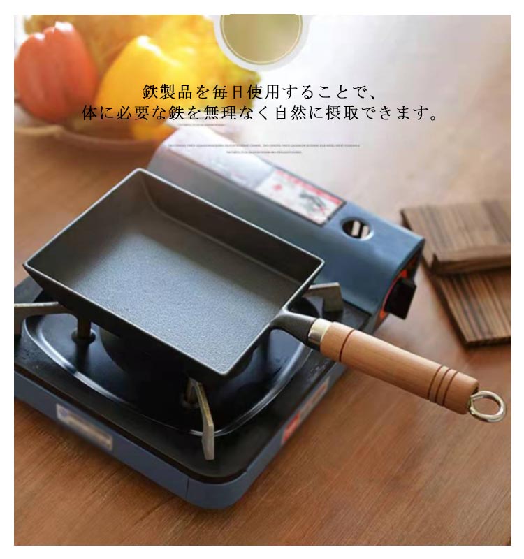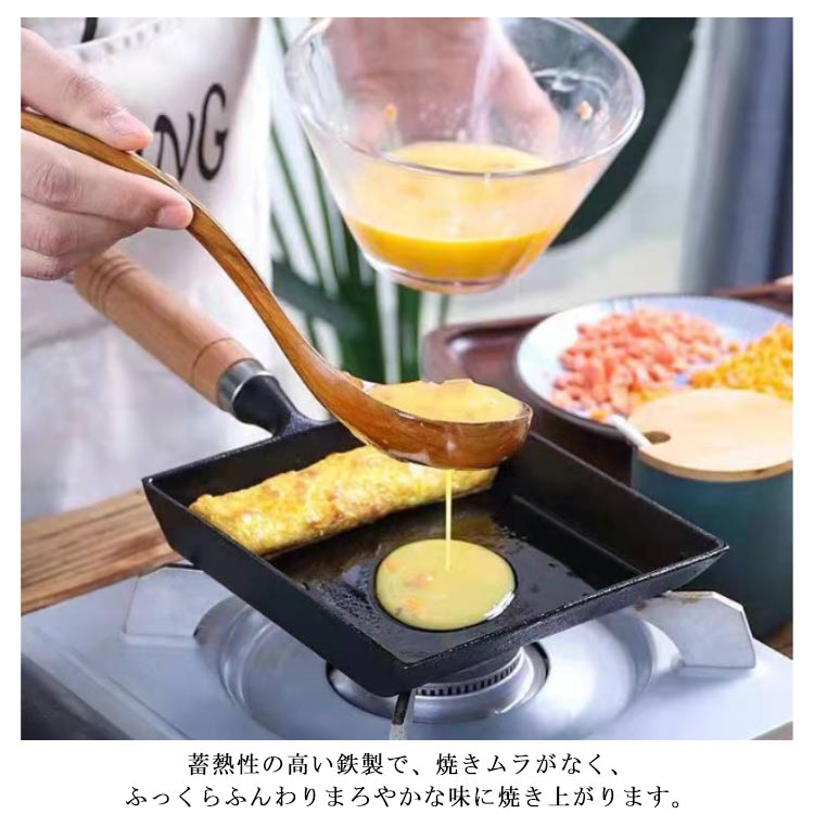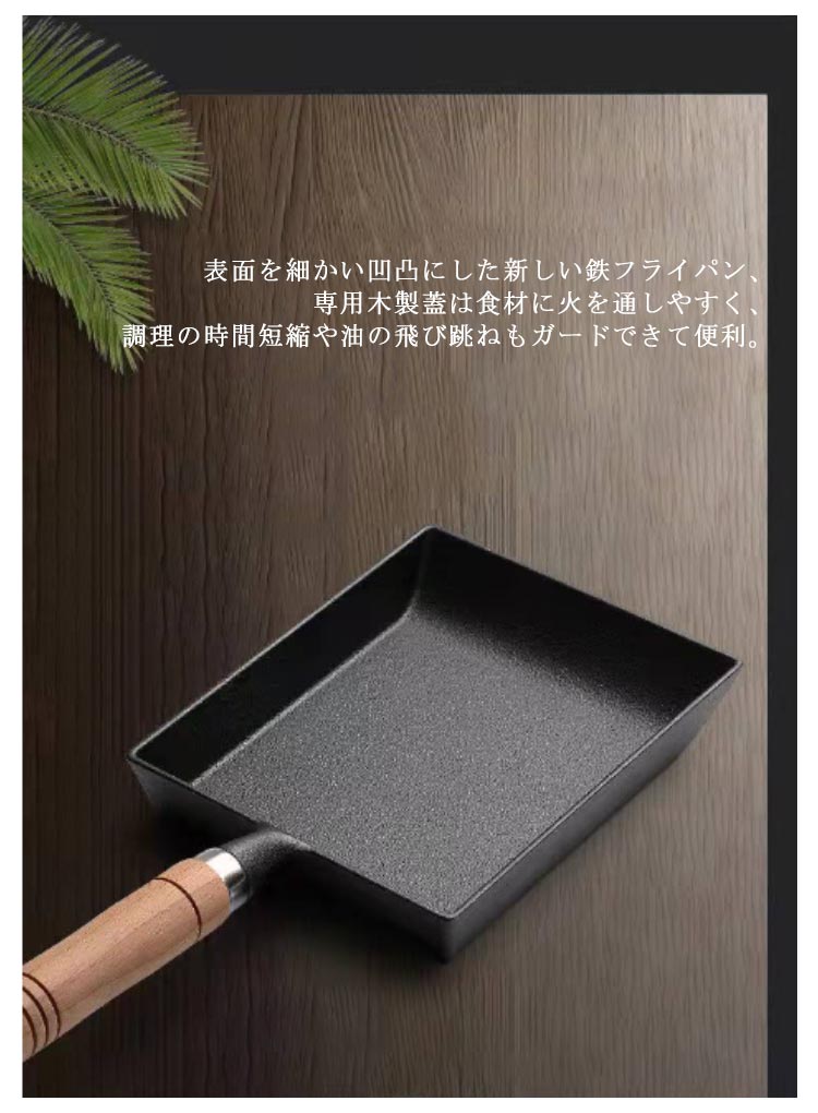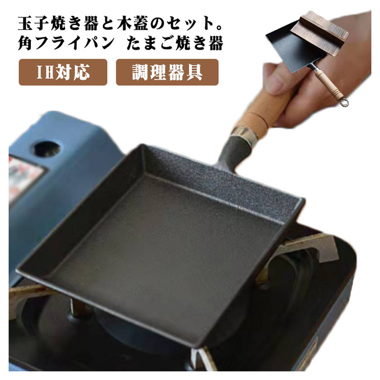 卵焼き器 木蓋 セット 鉄器 鋳物 玉子焼き器 フライパン エッグパン 角フライパン 鉄フライパン 角型 蓋付き IH対応 ガス火 直火 フタ付 たまご焼き器 たまご焼きフライパン 卵焼き 餃子 ギョーザ お弁当作り 調理器具 鍋