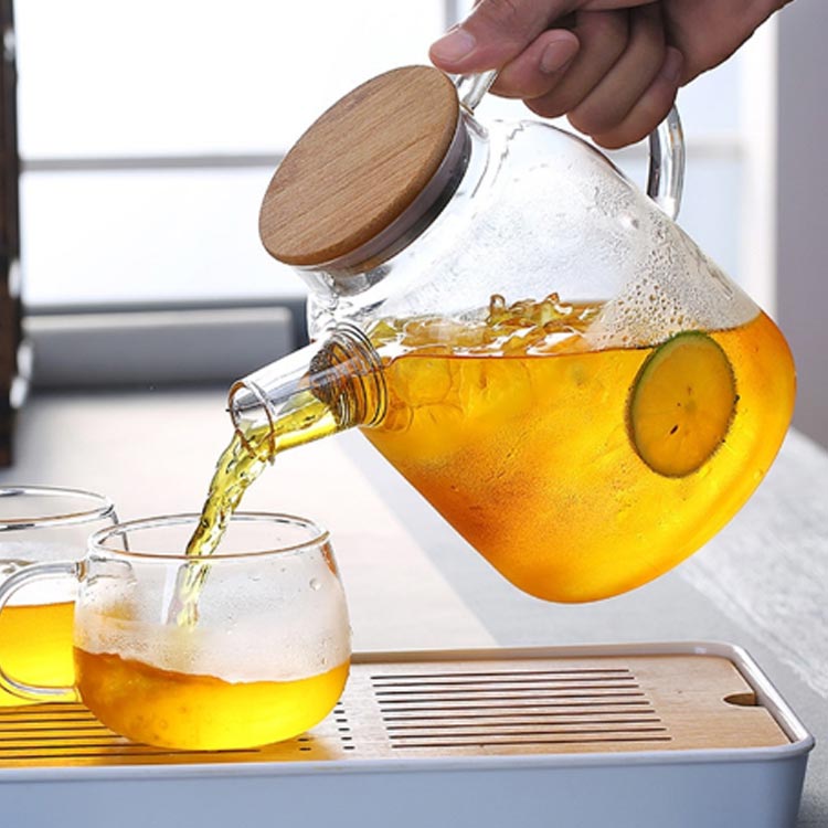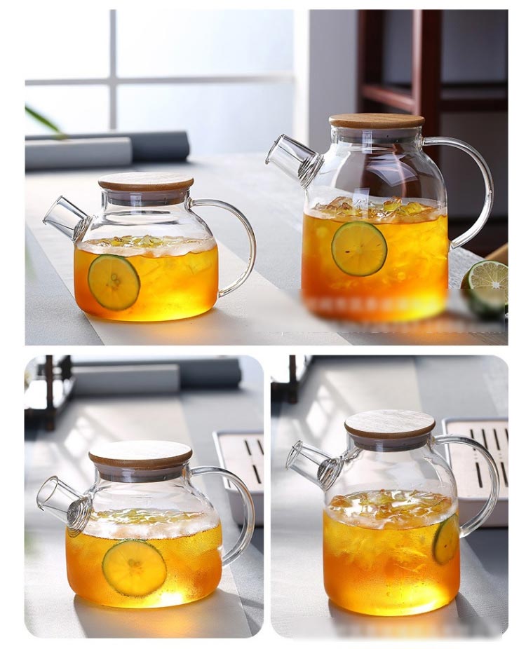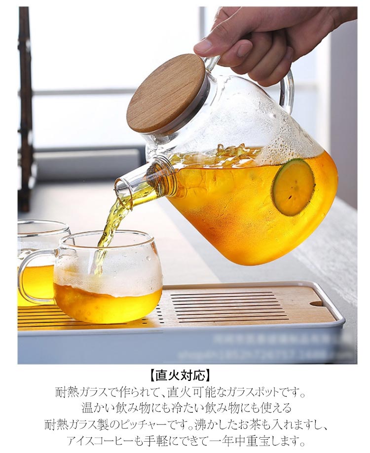 耐熱ガラス ピッチャー 蓋付き 1800ml 1500ml 1000ml 麦茶ポット 冷水筒 洗いやすい 直火 ガラスケトル 竹フタ ガラスポット ウォーターピッチャー ティーポット サーバー 冷蔵庫 水差し おしゃれ 冷茶 ジャグ 麦茶入れ 水だし 紅茶ポット やかん 北欧 ヤカン 直火