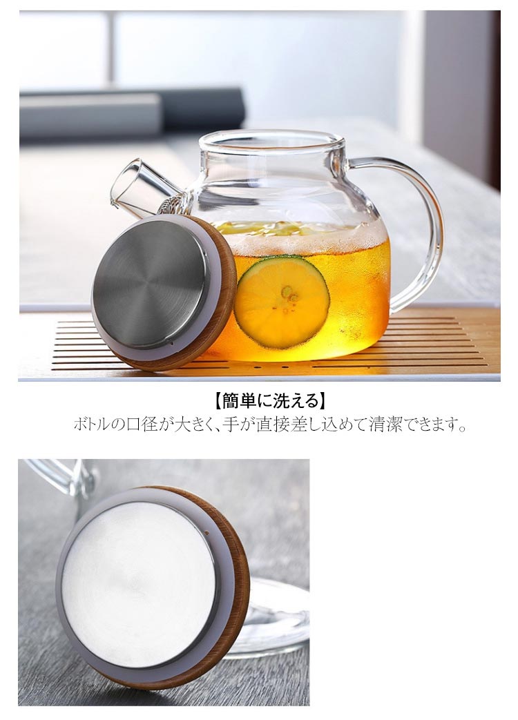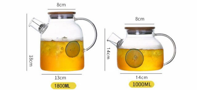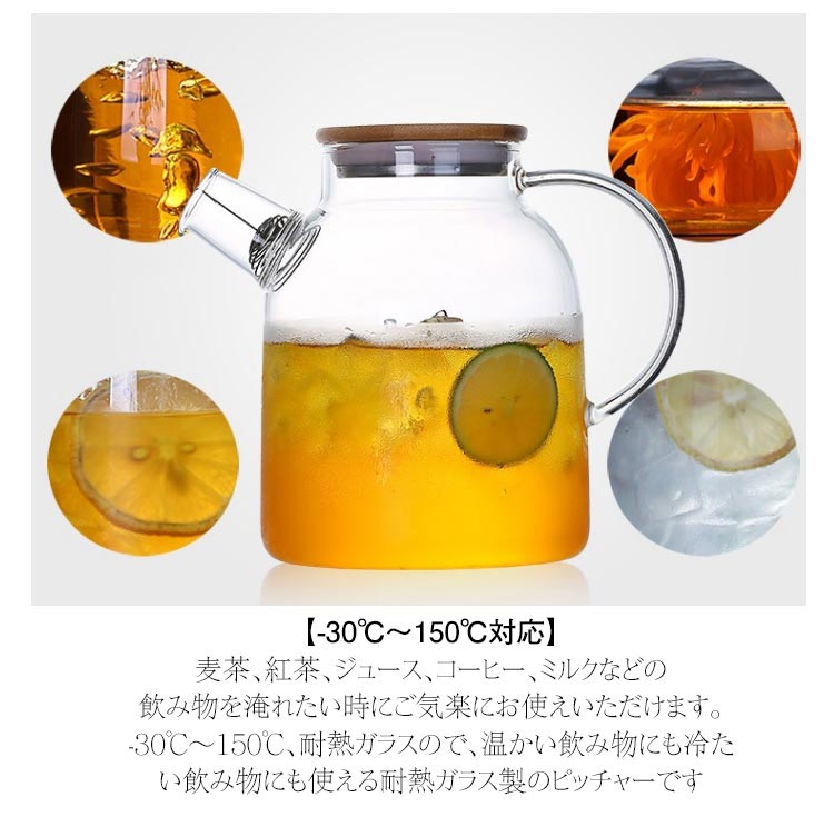 | 【蓋付きピッチャー】【1800ml/1500ml/1000ml】【直火可】 【直火対応】耐熱ガラスで作られて、直火可能なガラスポットです。 温かい飲み物にも冷たい飲み物にも使える耐熱ガラス製のピッチャーです。沸かしたお茶も入れますし、アイスコーヒーも手軽にできて一年中重宝します。 【-30℃~150℃対応】麦茶、紅茶、ジュース、コーヒー、ミルクなどの飲み物を淹れたい時にご気楽にお使えいただけます。-30℃~150℃、耐熱ガラスので、温かい飲み物にも冷たい飲み物にも使える耐熱ガラス製のピッチャーです 【簡単に洗える】ボトルの口径が大きく、手が直接差し込めて清潔できます。 あらゆるお茶に使える万能なティーポットを探している方におすすめです。★ 【蓋付き】香りが移りにくいため、紅茶だけでなく、緑茶や中国茶など種類の違うお茶を楽しめるのも魅力です。 麦茶、紅茶、花茶、ハーブティー、工芸茶、ジュース、コーヒーなどを入れます。 | |
