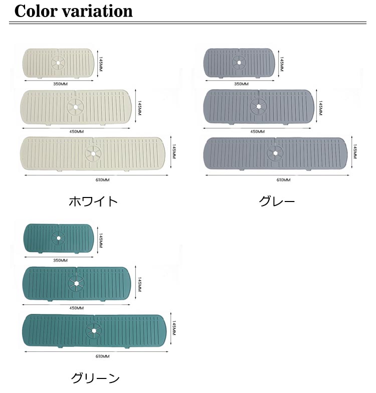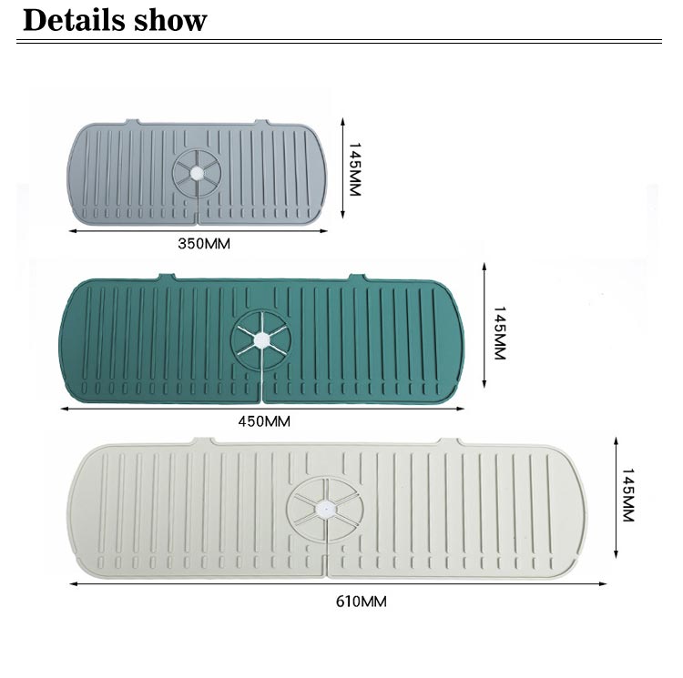 | 蛇口用シリコン水切りマット!高品質のシリコン素材を使用、アンチカビで長持ちする。 分割排水設計、均一な排水と飛沫防止。 収納テーブルのデザイン、強化され暗号化された滑り止めストリップ、ウォーターカップ、手指消毒剤などを簡単に配置できます。 蛇口排水マット。このようなシリコンパッドを置き、専用の排水口があり、防滴性と防カビ性があります。水はプールに直接排出されるため、清潔で衛生的です。 洗面台用排水マット。折りたたみ可能なデザインで、さまざまな場所での使用に適しています。 | |