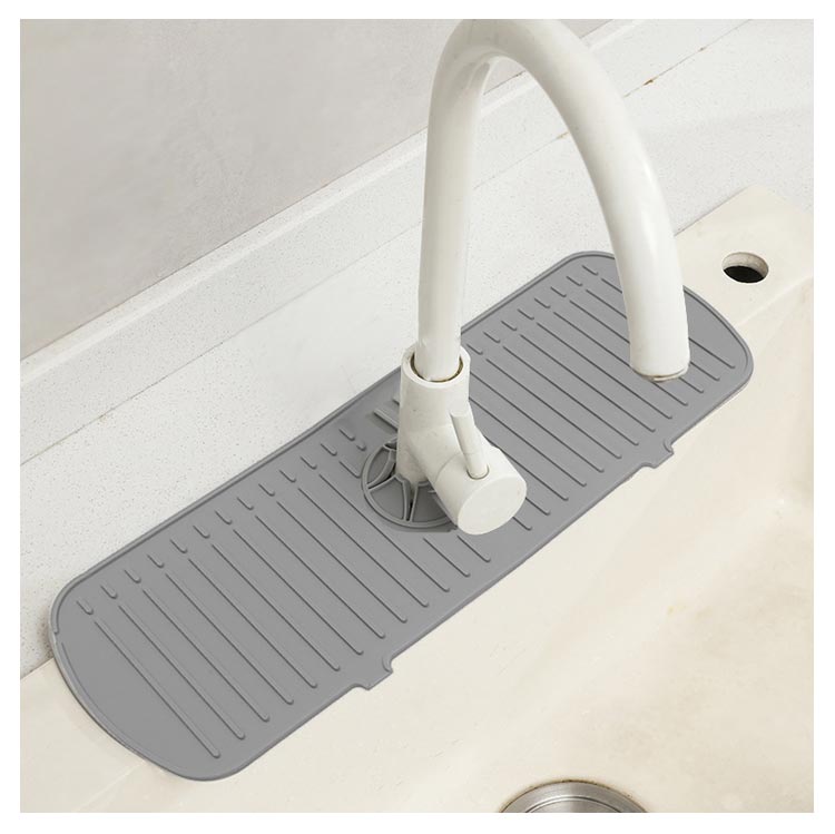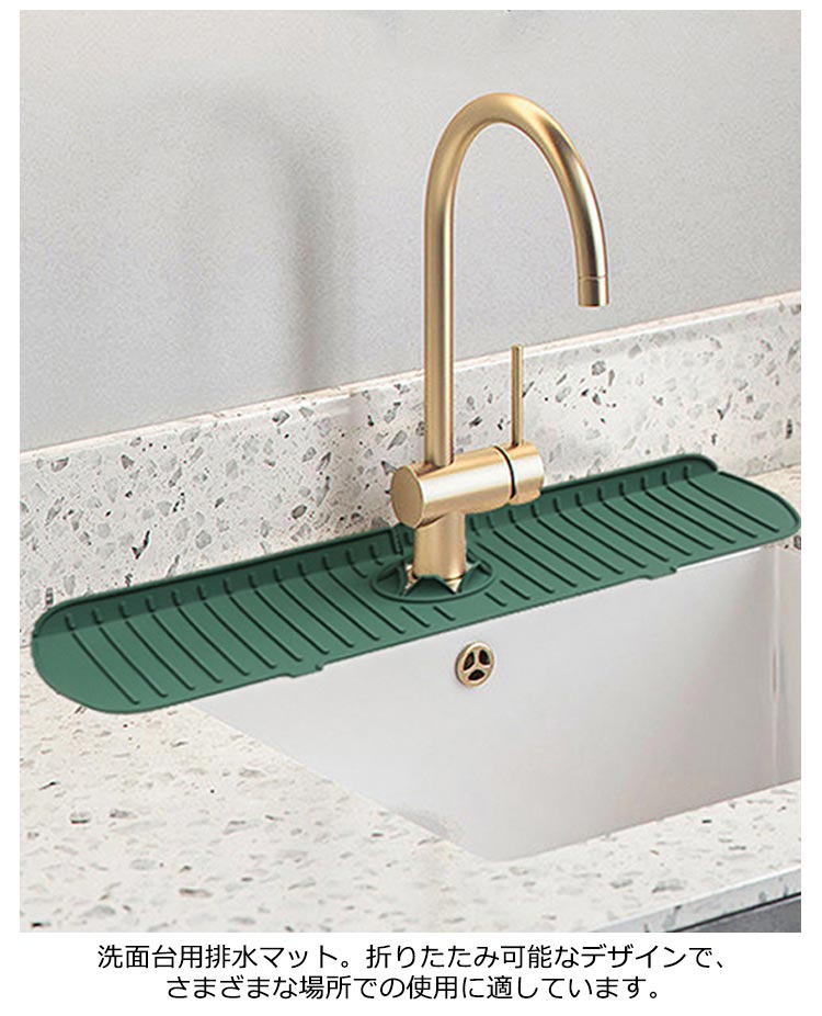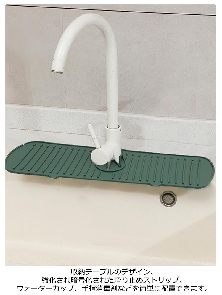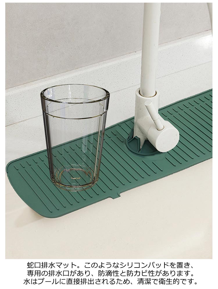 蛇口水切りマット シリコン 蛇口排水マット 長い ロング 蛇口用シリコン水切りマット 水汚れ防止 速乾 抗菌 防カビ 乾燥用マット 滑り止め キッチン バスルーム 洗面台 トレイ用排水マット 流し台 シンク内 軽量 便利グッズ