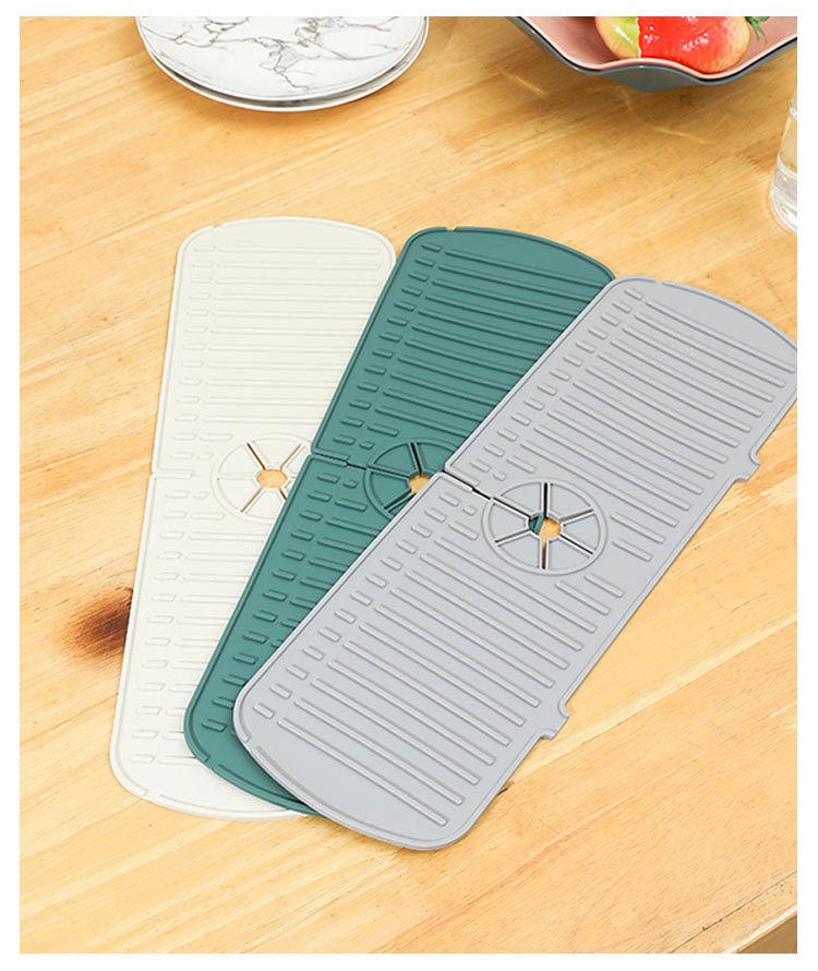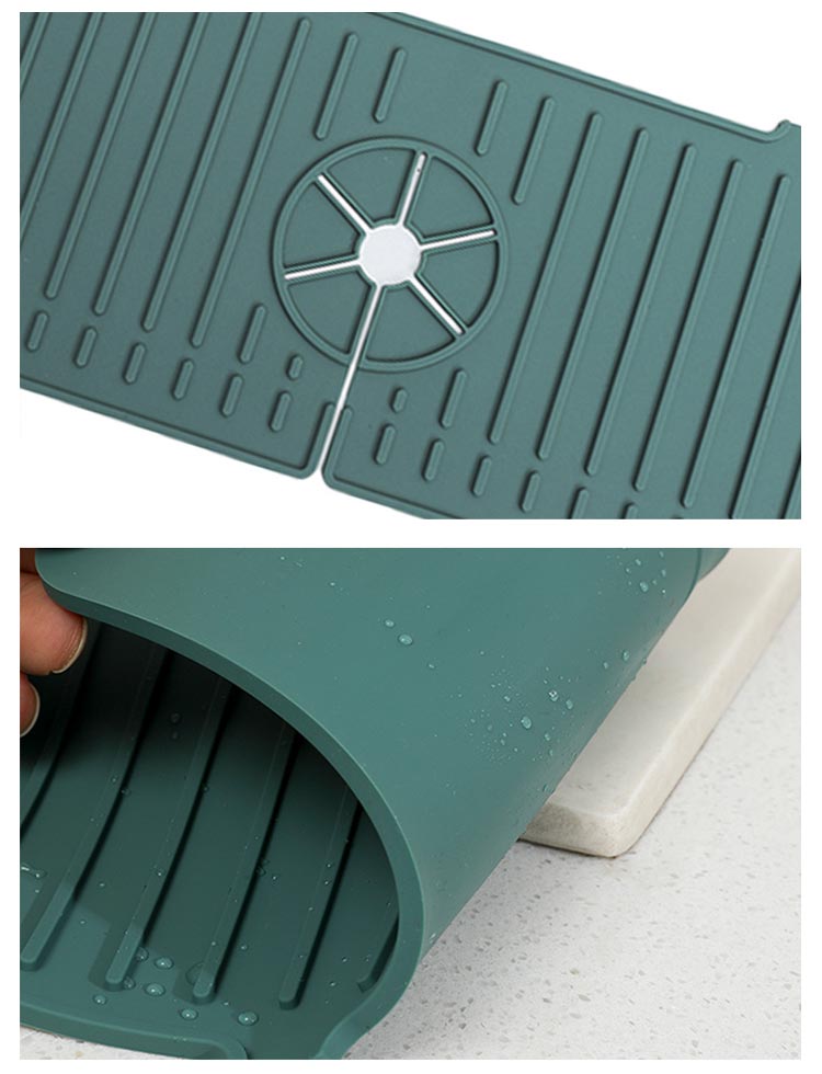 蛇口用シリコン水切りマット!高品質のシリコン素材を使用、アンチカビで長持ちする。分割排水設計、均一な排水と飛沫防止。収納テーブルのデザイン、強化され暗号化された滑り止めストリップ、ウォーターカップ、手指消毒剤などを簡単に配置できます。蛇口排水マット。このようなシリコンパッドを置き、専用の排水口があり、防滴性と防カビ性があります。水はプールに直接排出されるため、清潔で衛生的です。洗面台用排水マット。折りたたみ可能なデザインで、さまざまな場所での使用に適しています。