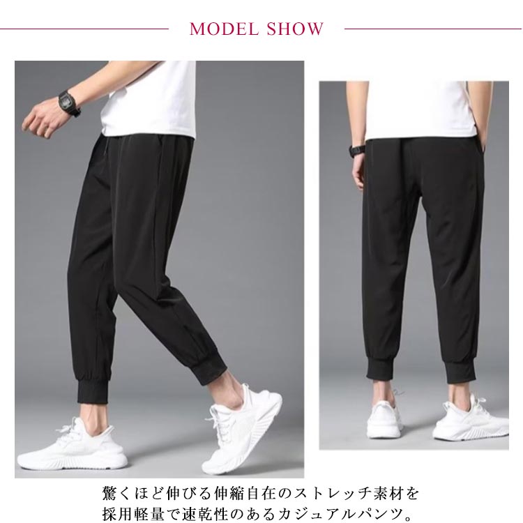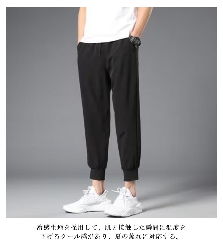 接触冷感 ジョガーパンツ メンズ 冷感 パンツ 2枚 ストレッチ 軽量 薄手 夏 涼しい スウェット 長ズボン アンクルパンツ アイスシルクロングパンツ アイスシルク ロングパンツ トレーニング 大きいサイズ ジム フィットネス ワークパンツ 運動 作業 ストレッチパンツ