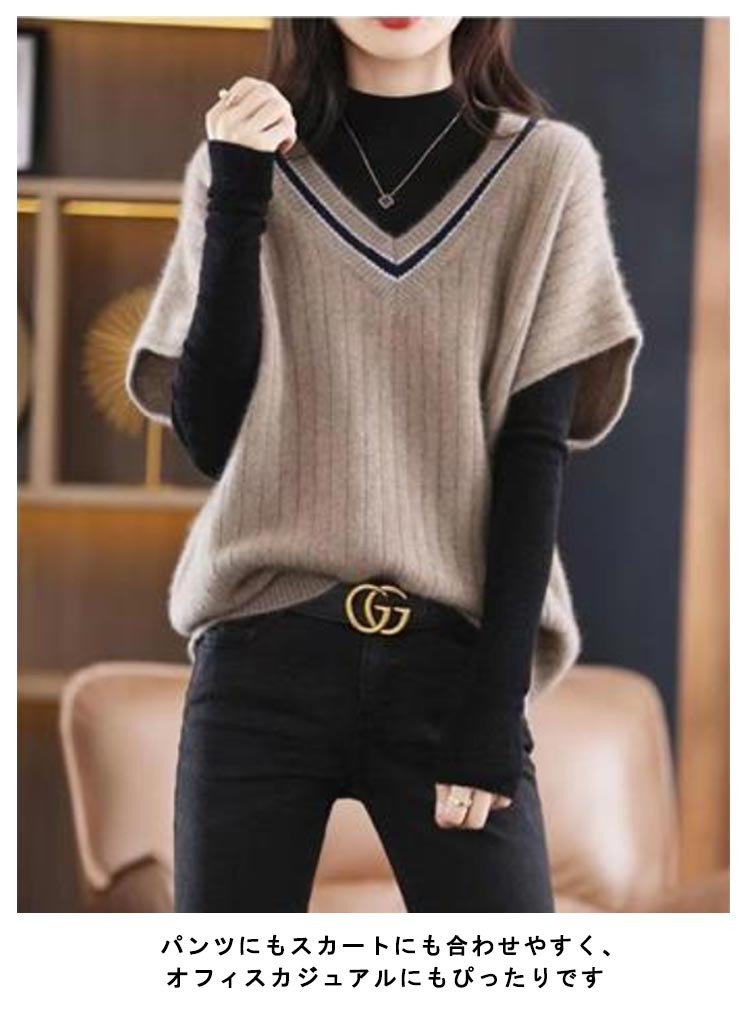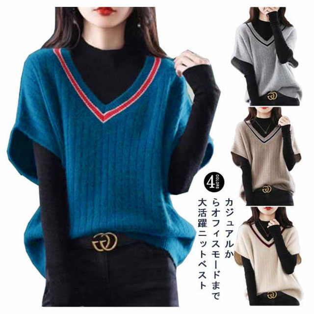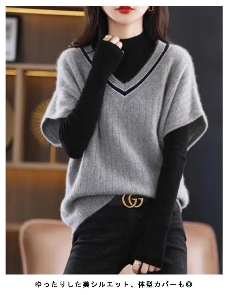 カジュアルからオフィスモードまで大活躍ニットベストゆったりした美シルエット、体型カバーも◎ 重ね着しやすい、春秋の季節にぴったりの一枚です 柔らでチクチクしない生地、春秋のカジュアルスタイルにかかせない優秀item。パンツにもスカートにも合わせやすく、オフィスカジュアルにもぴったりです
