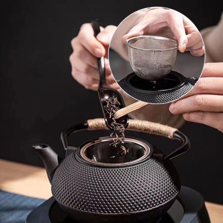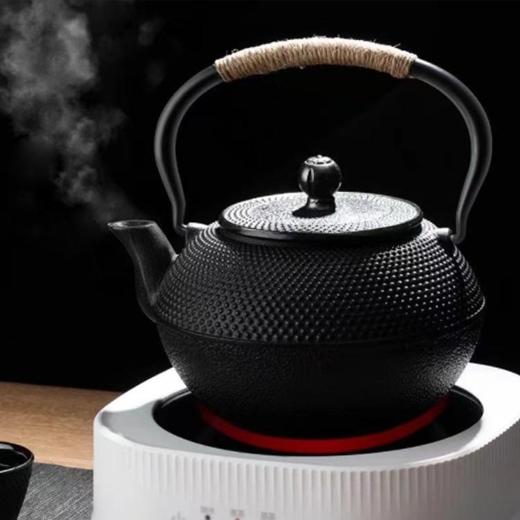 お茶を好きな人のために、生まれった鉄瓶。1人用はもちろん、2~4人用でお茶を淹れるのに丁度よい容量です。直火だけではなくIH調理器にも対応しております。茶こしがついており、鉄瓶だけではなく急須としても使用することが出来ます。手に触れる部分には麻の紐を用いることで、使いやすさはもちろん、鉄瓶の古臭いイメージを払拭したモダンなデザインとなりました。鉄瓶を直火にかけると鉄分が溶け出し水が柔らかな味になることにくわえ、鉄瓶の内側に水道水に含まれるカルキが吸着され、お湯をより美味しく楽しむことができます。底部は熱伝導率を高めるフラット形状で、IH調理器の使用に最適な底面積を確保。普段使いだけでなく、新築・引越し・結婚式などにも喜ばれる「スマート」ギフトとしても◎