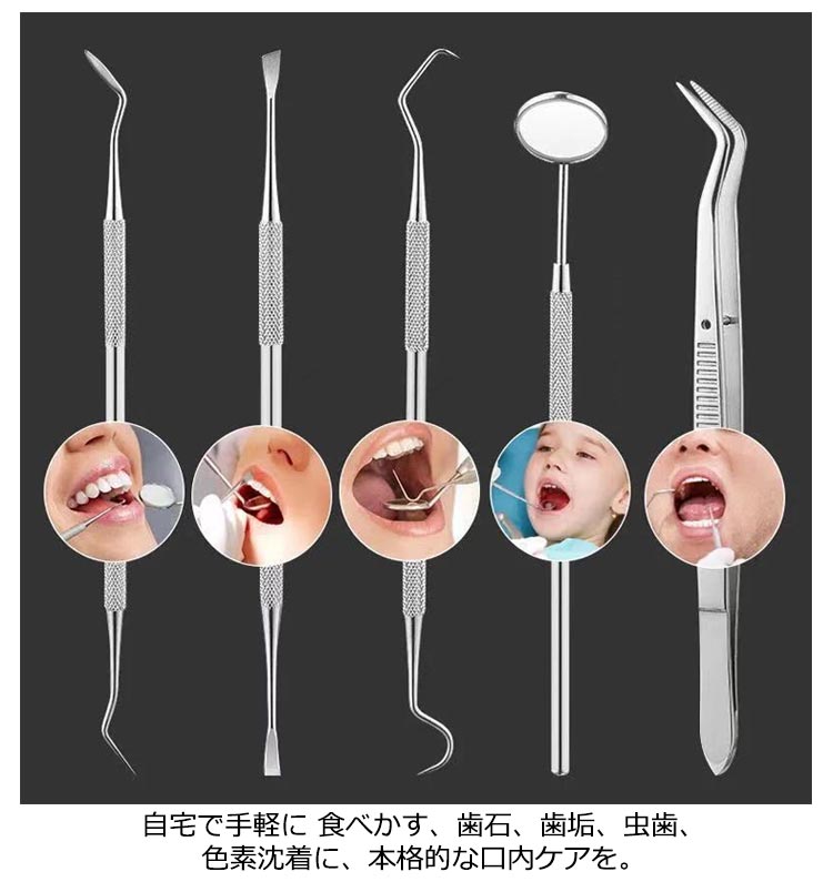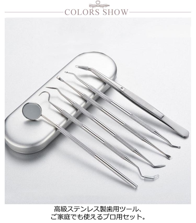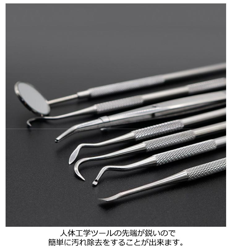 歯石取り 歯石とり 器具 自宅用 自分で取る スケーラー 歯垢 ヤニとり ステンレス製 先極細 デンタルツール 歯石除去 プロ仕様 口腔ケア器具 収納ケース付き 虫歯 口腔清潔 自宅用 送料無料 敬老の日 6点セット 歯科ツールセット 歯石取り