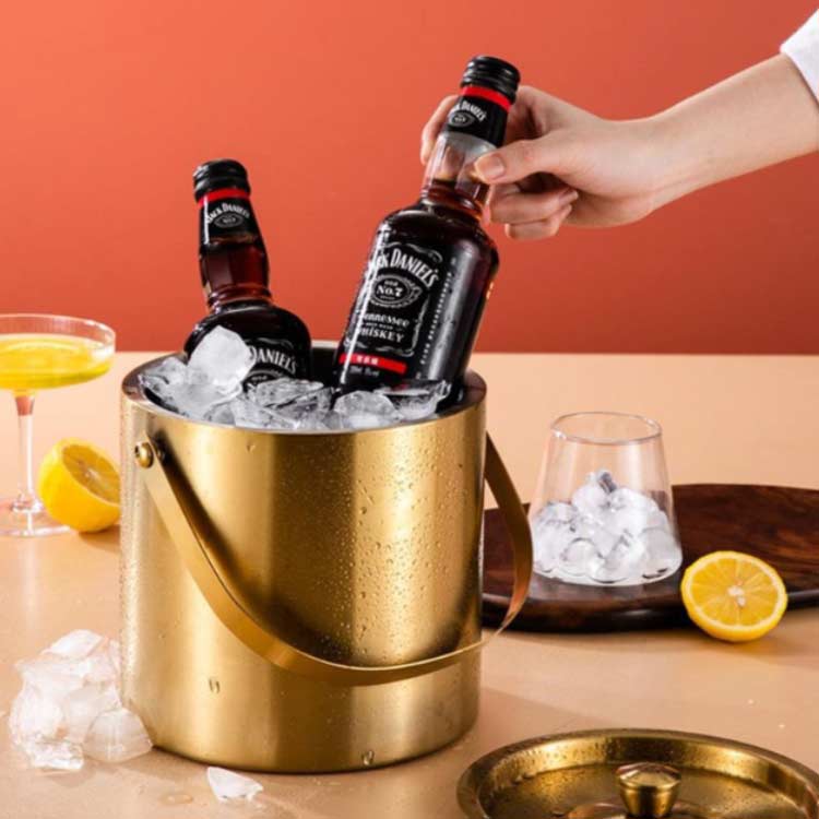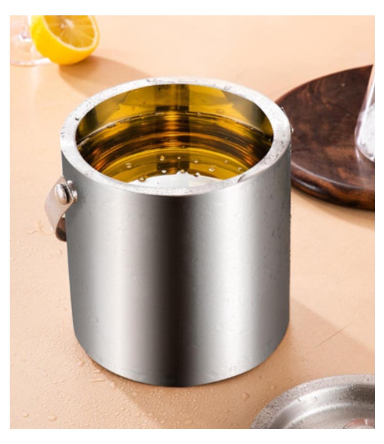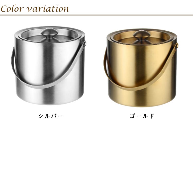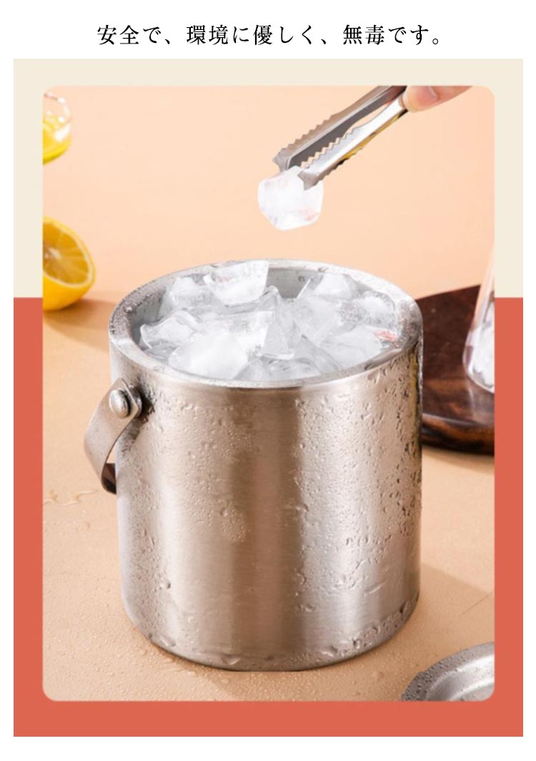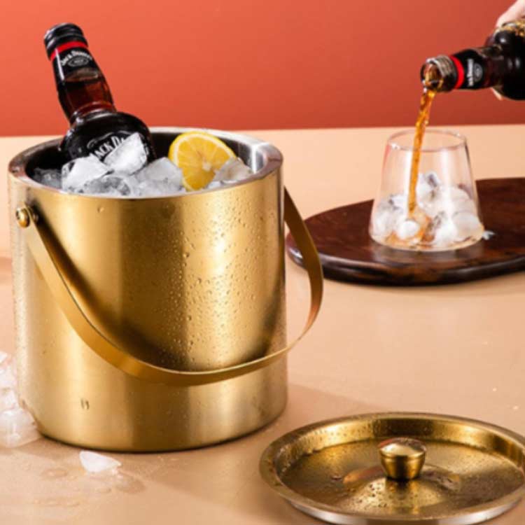 ゴールド アイスバケット 1.6L 2L ワインクーラー 蓋付き アイススクープ 二重壁断熱 ステンレス鋼 氷バケツ ワイン 酒 クーラー ポータブル ハンドル付き 真空二重 大型 アイスペール 溶けにくい シャンパンクーラー