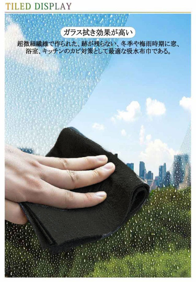 | 拭き跡無し!洗剤不要!10枚の魔法のガラス用布巾です! 【ガラス拭き効果が高い】超微細繊維で作られた、跡が残らない、冬季や梅雨時期に窓、浴室、キッチンのカビ対策として最適な吸水布巾である。 【汚れに強い】吸水性に優れ、洗剤を使わずに汚れを落とすことができる。水で拭くだけで汚れが落ち、洗剤と一緒に使うこともできます。 【化学薬品不要】このハイテクの魔法布巾は、驚くほどの吸水力を持ち、迅速に乾燥します。窓ガラスや鏡、台所や浴室の清掃に最適です。 【複雑な使用手順はありません】濡らし、拭き、洗い流し、繰り返し使用するだけです。 【多用途】窓、コンロ、車、フロントガラス、家具、家電など、さまざまな物に幅広く使用できます。 | |