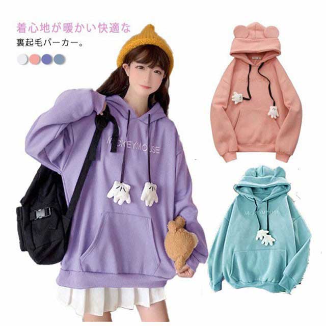 パーカー レディース 秋冬 裏起毛パーカー ペアルックパーカー 長袖 プルオーバー フード付き トップス ルームウェア ポケット付き ゆったり 大きいサイズ カジュアル 可愛い形 韓国ファッション 原宿風 おしゃれ 通学 通勤 春 秋 冬 送料無料