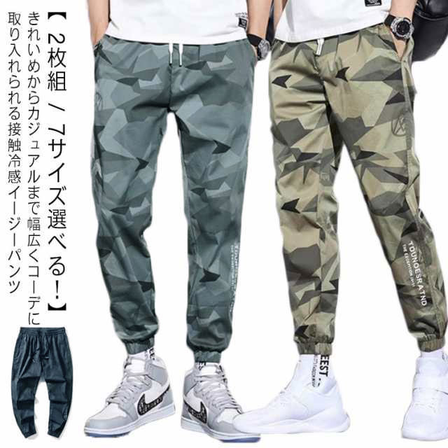 スウェットパンツ メンズ スリム スウェットパンツ夏 冷感 涼感 ストレッチ 伸縮 夏 ジョガーパンツ 2枚組 カモフラ柄 迷彩 メンズ ゴルフパンツ 冷感 冷感パンツ アイスシルク スキニーパンツ 冷感ズボン ジョガー パンツ 大きいサイズ ゴルフウェア ストレッチパンツ
