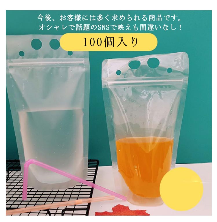 ドリンクパウチ スパウトパウチ 350ml 500ml 100個入り タピオカ ドリンクパック スムージー バナナジュース 茶 テイクアウト 容器 ドリンクカップ 使い捨てカップ ジュースパック 業務用 ストロー付き パウチ クリア 手持ち簡単 キャップなし 飲食店 喫茶店