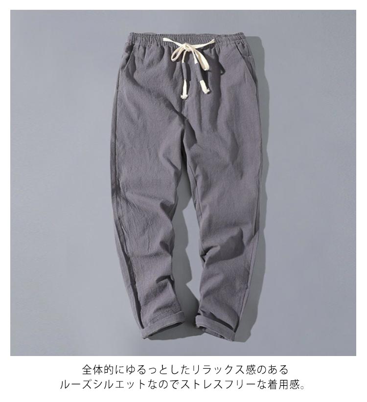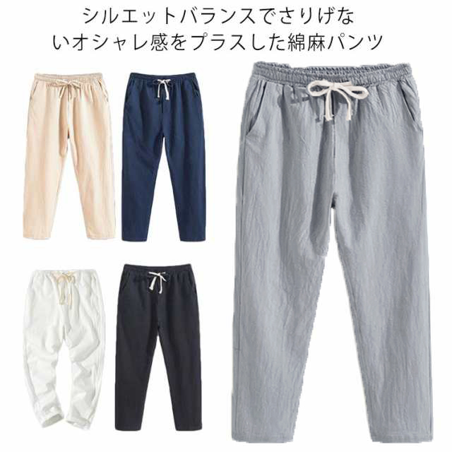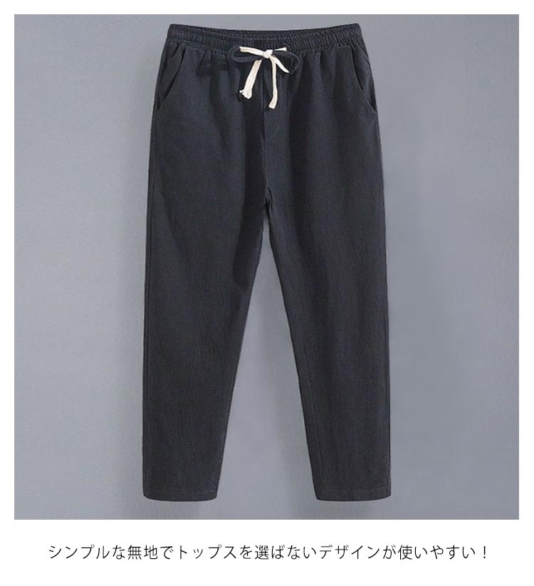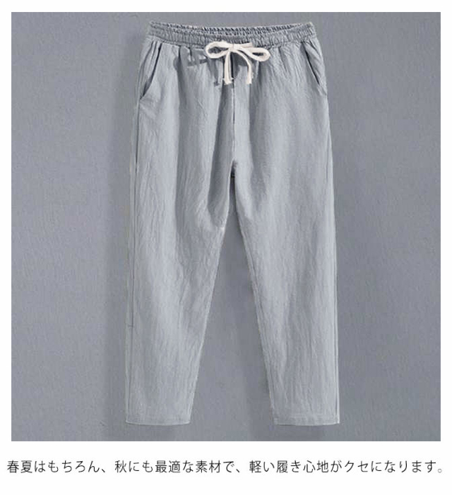 綿麻パンツ 9分丈 メンズ ボトムス リネンパンツ 綿麻 リネン パンツ ひんやり 紳士 麻パン 薄手 テーパードパンツ イージーパンツ ロングパンツ リラックス ルームウェア 麻 コットン 大きいサイズ 無地 シンプル 通勤 ゆったり 体型カバー 送料無料 ギフト