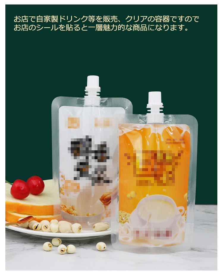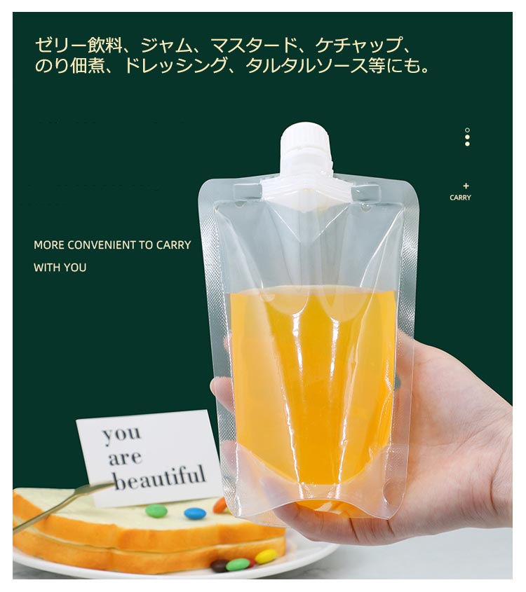 パウチ容器 スパウトパウチ 100ml 150ml 200ml 250ml 300ml 380ml 500ml ふた付 保存容器 100個入り スタンド袋 パウチ 保存 ジュースパック ゼリー 自立 容器 食品用 キャップ付き 耐高温 冷凍パック 詰め替え おしゃれ 規格袋 テイクアウト用