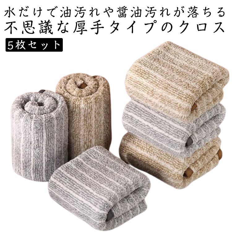 油汚れクロス 5枚入 25×25cm 30×30cm 厚手タイプ 吸水タオル 雑巾 ふきん ぞうきん 吸水クロス 洗剤不要 油汚れ 水だけ 手拭き クロス 布巾 ふきん キッチンクロス 台拭き マイクロファイバー キッチンタオル 掃除 キッチン 台所