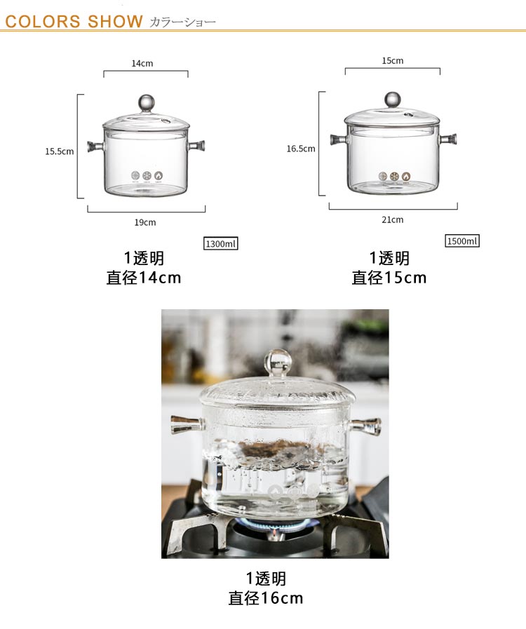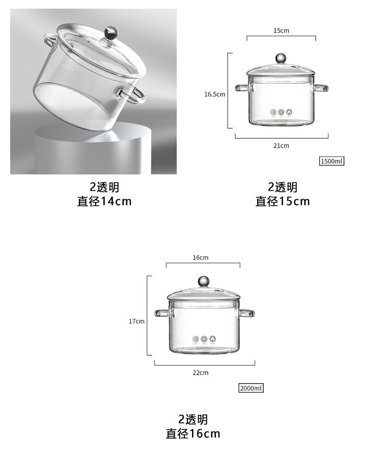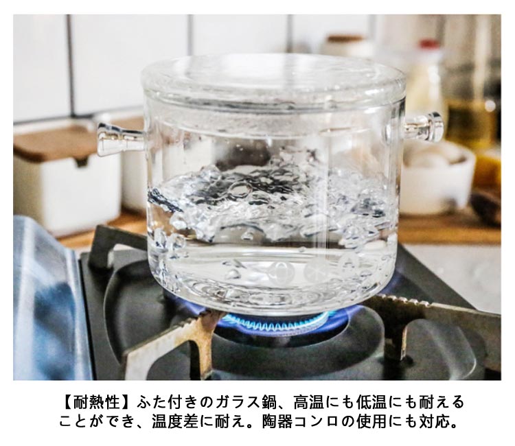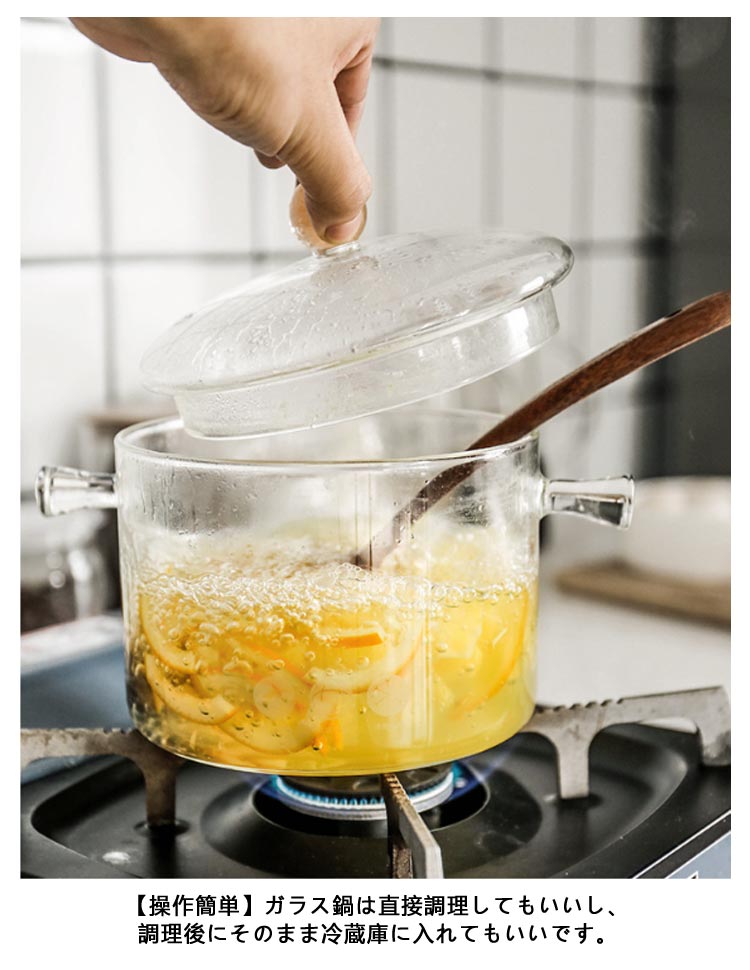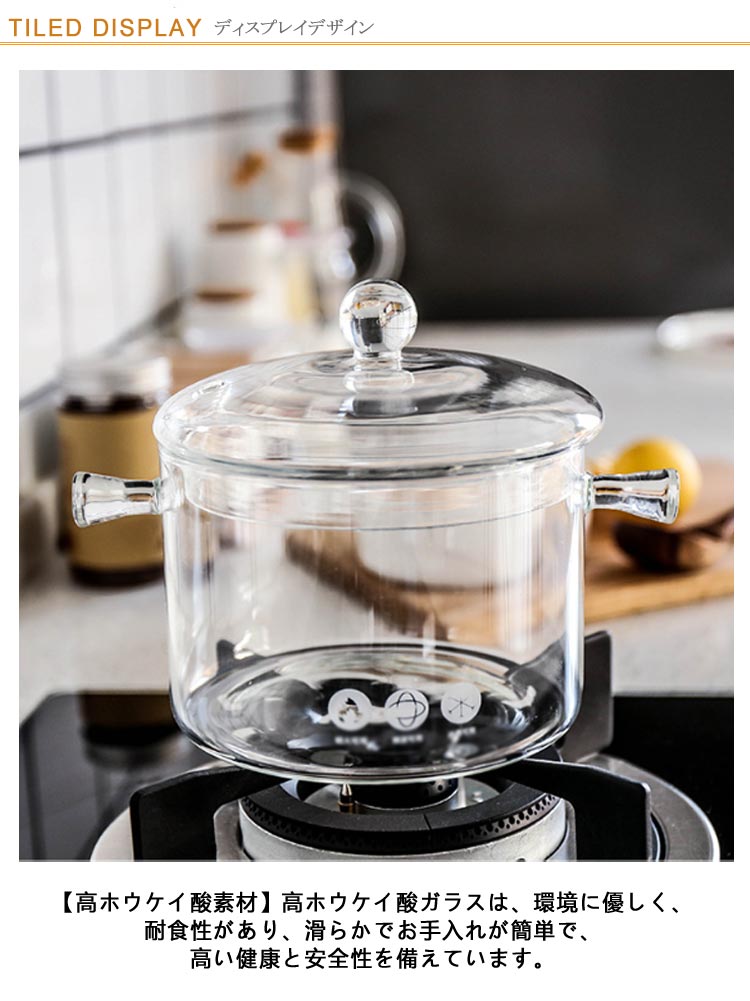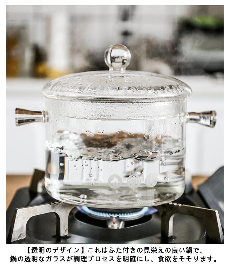 ガラス調理鍋 スープ鍋 耐熱ガラス鍋 食材が見えるガラス鍋 卓上鍋 透明 ガラススープ鍋 耐熱ガラス 家庭用 ふた付き 容量1.3 1.5L 2L ガラス蓋 直火対応 フタ付き 取っ手 煮込み鍋 キッチン用品 ミルク パスタ 透明調理鍋 ダブルハンドルポット