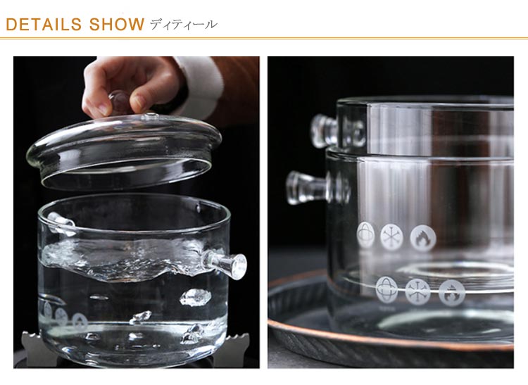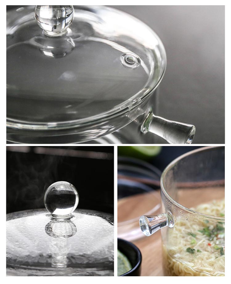 【高ホウケイ酸素材】高ホウケイ酸ガラスは、環境に優しく、耐食性があり、滑らかでお手入れが簡単で、高い健康と安全性を備えています。【透明のデザイン】これはふた付きの見栄えの良い鍋で、鍋の透明なガラスが調理プロセスを明確にし、食欲をそそります。デザイン性の高い、個性的なガラスピッチャー、いつもと違う極上感を演出できます。【操作簡単】ガラス鍋は煩わしい台所の整理作業をより簡単にします。ガラス鍋は直接調理してもいいし、調理後にそのまま冷蔵庫に入れてもいいです。別の弁当箱に置き換えて保存する必要はありません、ガラス鍋を洗うと食器洗い機に渡すこともできます。【耐熱性】ふた付きのガラス鍋、高温にも低温にも耐えることができ、温度差に耐え。陶器コンロの使用にも対応。【適用】牛乳、ソース、デザート、サラダ、特にインスタントラーメンに最適な容器で、鍋としてもボウルとしても使用できます。