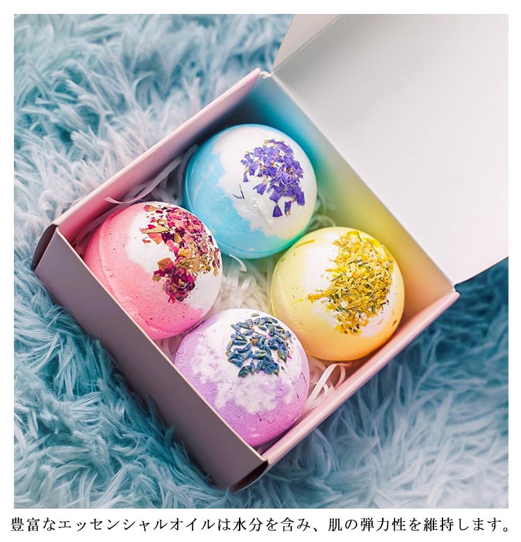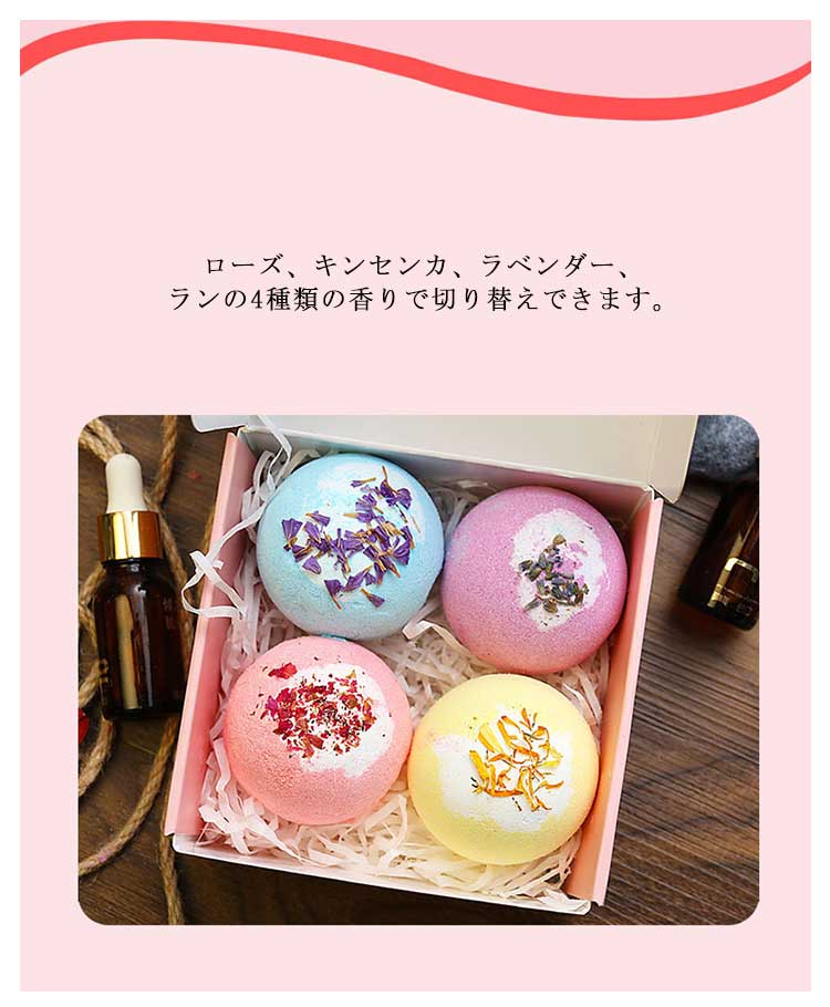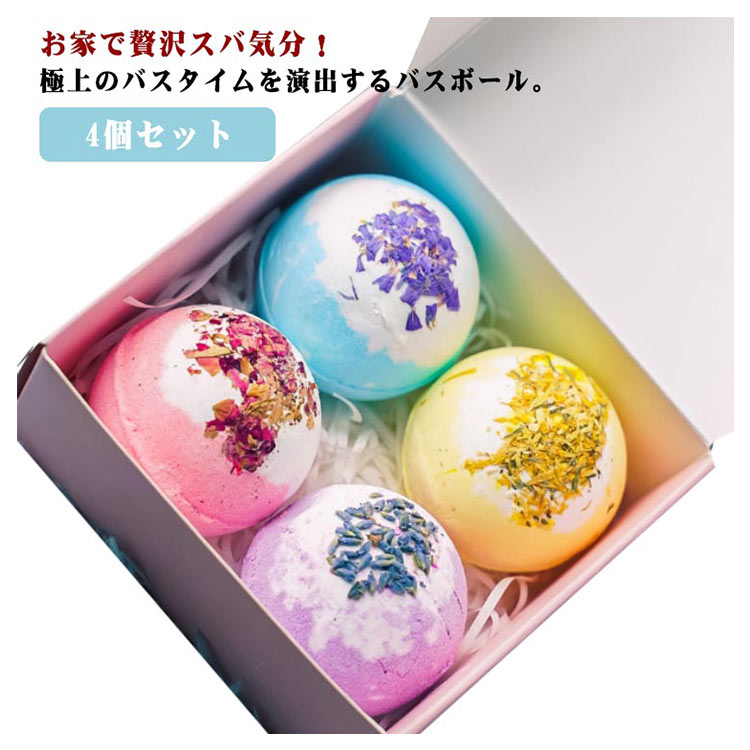 バスボム 4個セット 香り爆弾 プレゼント 女性用 誕生日 入浴剤 肌に優しい 詰め合わせ バスボール お風呂用 母の日 リラックスグッズ お祝い 贈り物 ギフト バレンタインデー 送料無料 ギフトボックスを配送しない