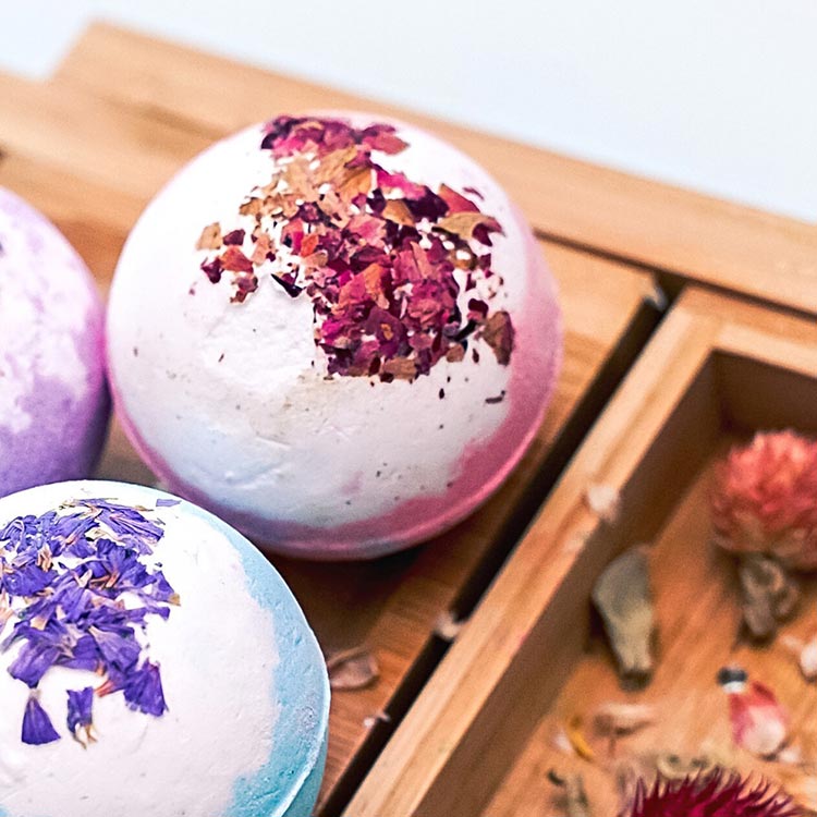 お家で贅沢スバ気分!極上のバスタイムを演出するバスボール。天然の海塩や天然エッセンシャルオイルなどを採用しており手作りされています。ローズ、キンセンカ、ラベンダー、ランの4種類の香りで切り替えできます。豊富なエッセンシャルオイルは水分を含み、肌の弾力性を維持します。海の塩が肌を優しく包み込み、潤いを与え、身体の不快感を軽減します。魅惑的な香りが身も心もリラックスさせ、深い眠りへと誘います。華やかな見た目と実用性があって、ギフトとしても最適です。