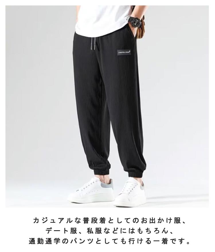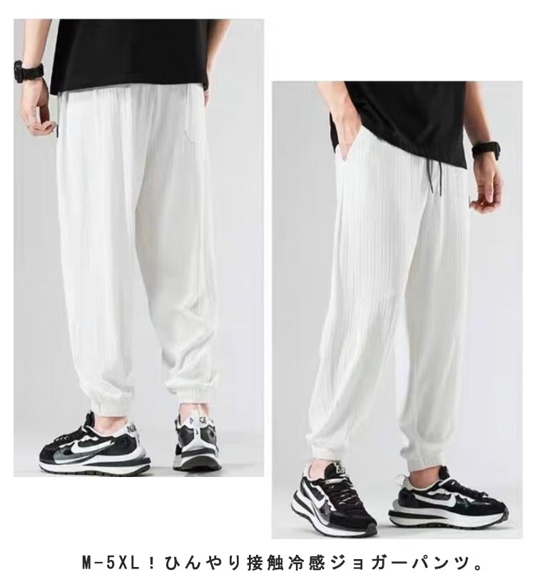 | M-5XL!ひんやり接触冷感ジョガーパンツ。 カジュアルな普段着としてのお出かけ服、デート服、私服などにはもちろん、通勤通学のパンツとしても行ける一着です。 部屋着、トレーニング、ジム、ジョギング、ダンスなど多くのシーンでご利用いただけます。ランニング、ハイキング、アウトドア、キャンプ、ウォーキング、トレーニング、登山、くつろぎ、その他日々のアクティビティに最適です。 | |