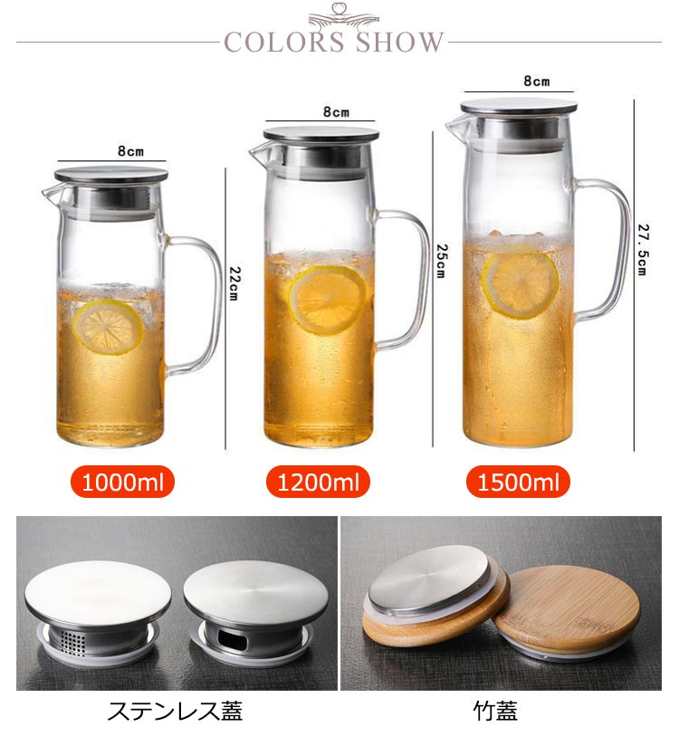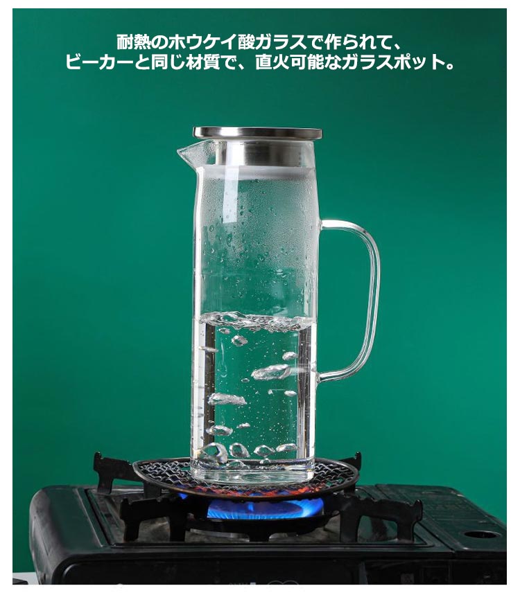 ガラスピッチャー ガラスポット 1000ml 1200ml 1500ml 直火 耐熱 ガラスケトル ティーポット 麦茶ポット 耐熱ガラス ピッチャー ガラス 大容量 直火電気ケトル対応 ホウケイ酸ガラス お茶ポット 冷水ポット冷水筒 麦茶入れ 水だし 紅茶ポット
