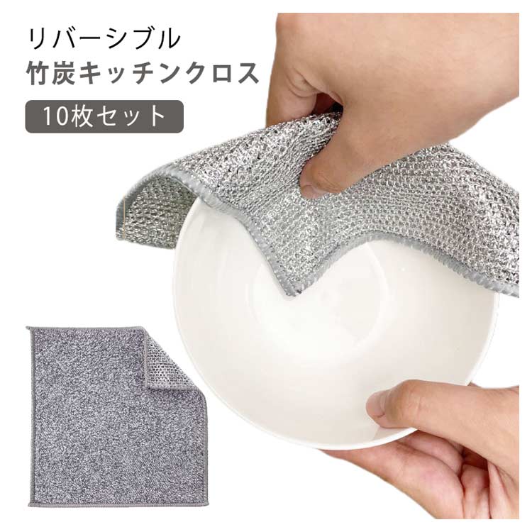10枚セット リバーシブル竹炭キッチンクロス 20×20cm キッチンタオル 食器洗い用 メッシュふきん キッチンクロス 竹炭キッチンクロス リバーシブルクロス 食器用キッチンタオル キッチン雑巾 掃除 雑巾 食器洗い布 両面 布巾 吸水 家庭用