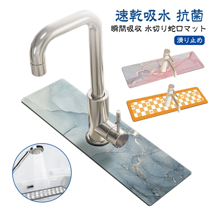 水切りマット キッチン吸水マット 蛇口乾燥マット 蛇口 マット 蛇口マット ソフト 水栓マット 乾燥 速乾吸水 抗菌 防カビ 滑り止め 消臭 洗える 蛇口吸収パッド 洗面台トレイ キッチン 用 シンクマット シンク内 コンパクト