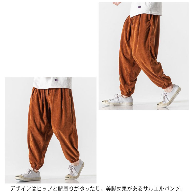 サルエルパンツ メンズ 秋冬 ワイドパンツ コーデュロイパンツ バルーンパンツ 長ズボン カジュアル ヒップホップ ゆったり ビッグシルエット 春 秋冬 大きいサイズ スポーツ M L XL 2XL 3XL 4XL 5XL