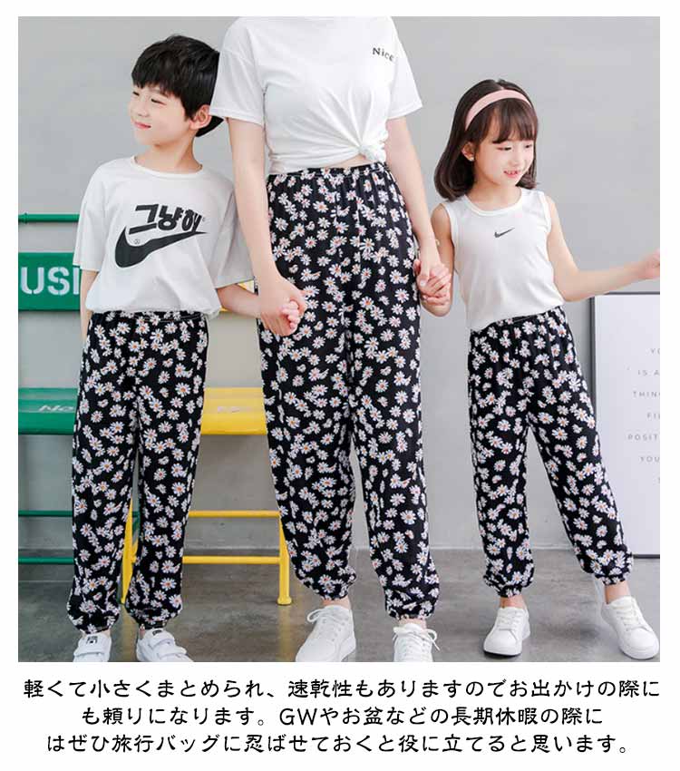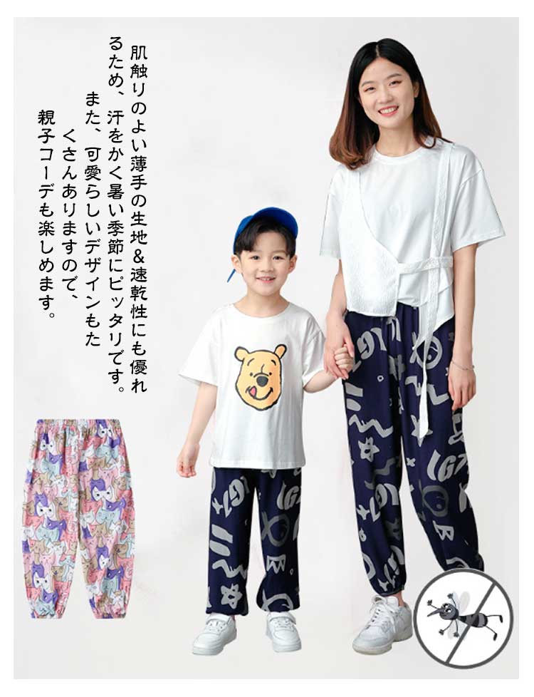 キッズ服 子供服 長ズボン 薄い 薄手 虫よけパンツ 涼しい 速乾 親子コーデ リンクコーデ ボトムス リラックスパンツ ロングパンツ 女の子 男の子 春 夏 タイパンツ レディース パンツ 部屋着 90 100 110 120 130 140 150cm S M L XL XXL