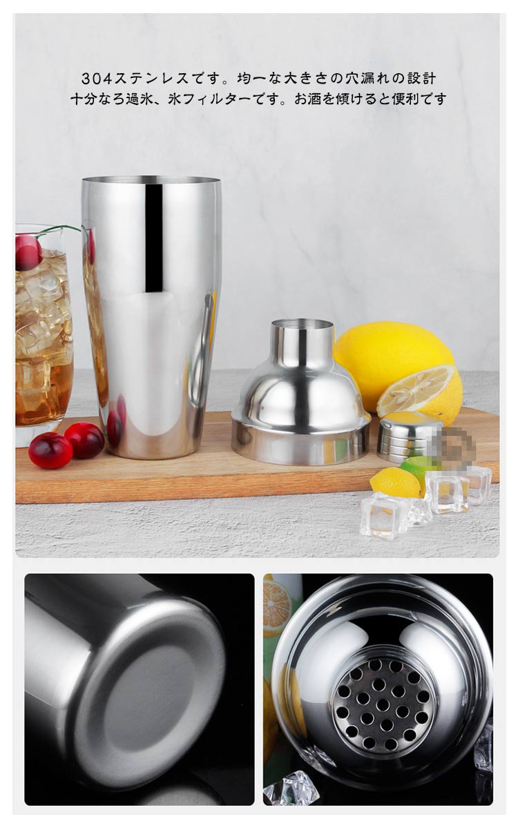 カクテルシェイカー食品級のステンレス材質を採用して、精巧に作られて、錆に強く、表面はピカピカの鏡面仕上げ,スタイリッシュの外観と高い品質です。304ステンレスです。均一な大きさの穴漏れの設計、十分なろ過氷、氷フィルターです。お酒を傾けると便利です。丸みのあるデザインです。ボディラインが美しいです。滑らかで手を傷つけない、人間工学に基づいています。バーテンダー好きにもオススメです。友人との飲み会や誕生日会などで、あるいは自宅で普段からお酒を飲んでいます。