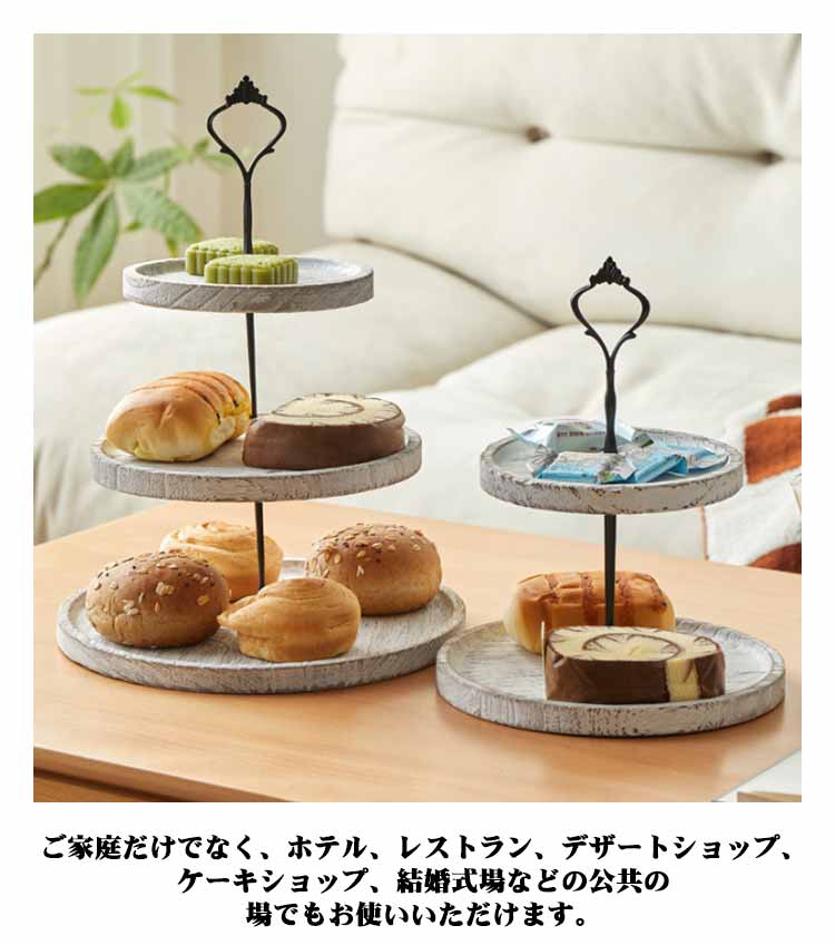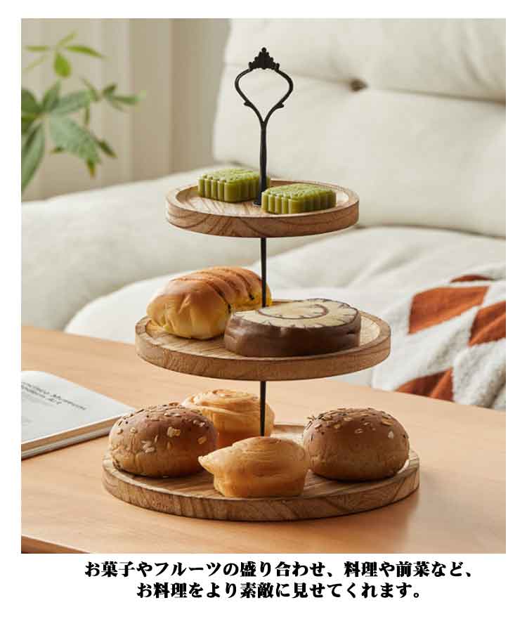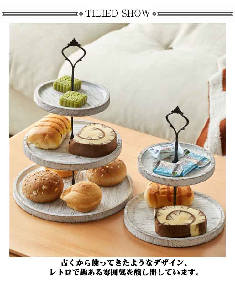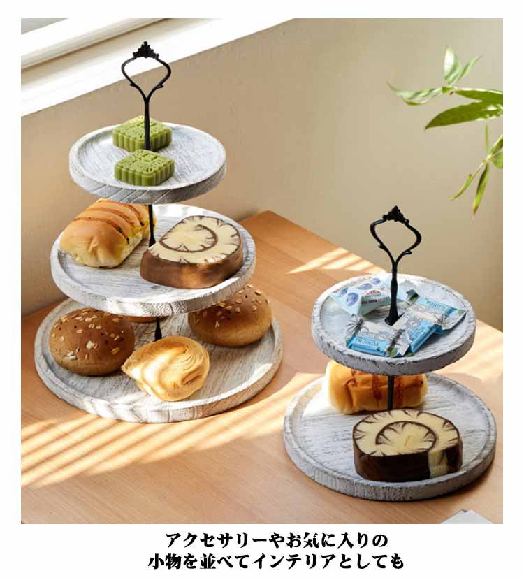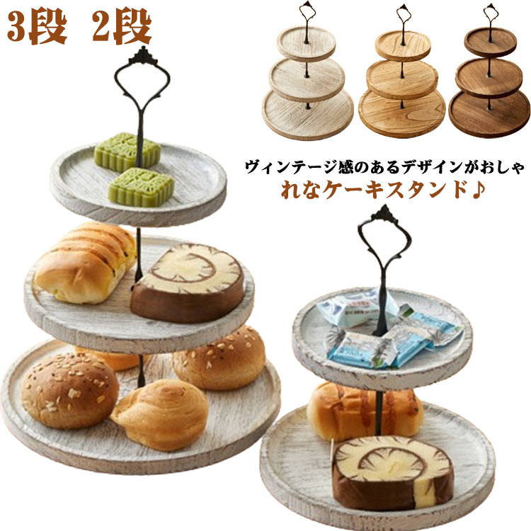 アフタヌーンティー スタンド 木製 3段 2段 ケーキスタンド デザートスタンド スタンド ケーキトレイ フルーツトレイ ディスプレイトレイ ウッドプレート ケーキ棚 デザート台 アフタヌーンティー ケーキ皿 ヴィンテージ