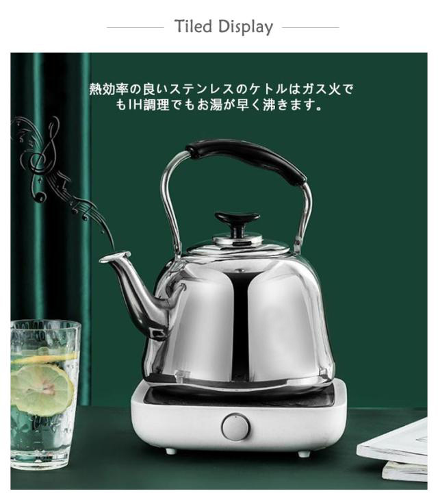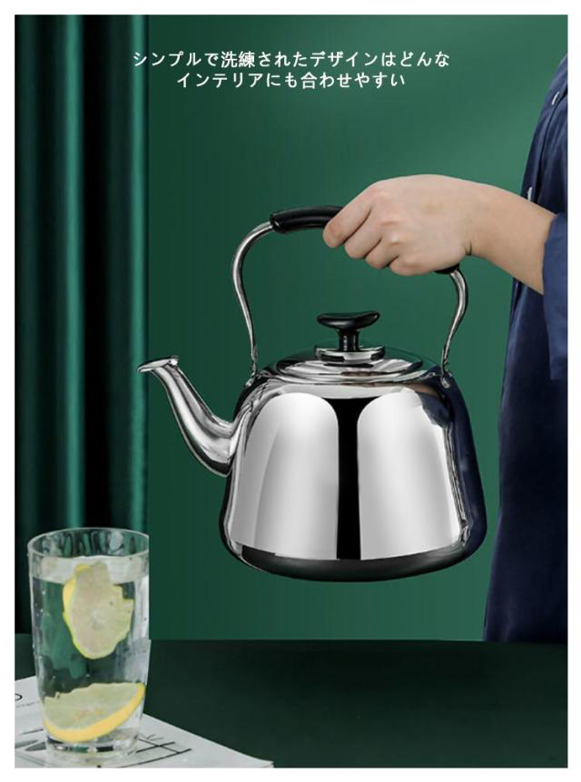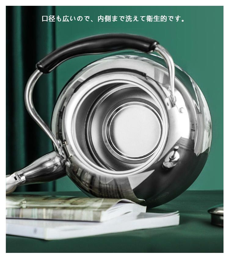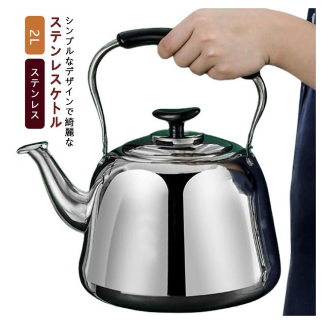 ステンレスケトル IH対応 ステンレス製 やかん 2L 広口 ケトル ガス火対応 注ぎやすい 洗いやすい 湯沸かし 高級感 丈夫 大容量 お知らせ 熱効率 おしゃれ インテリア プレゼント ギフト 錆びない 家庭用 事務室 シンプル 贈り物 プレゼント 送料無料