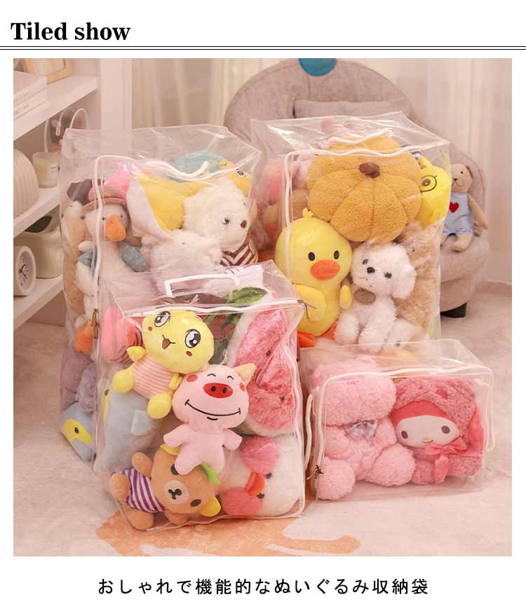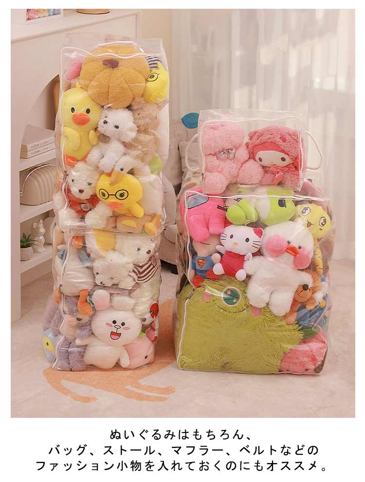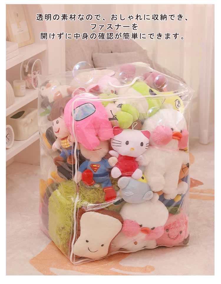 ぬいぐるみ 収納 透明 収納袋 ぬいぐるみ収納バッグ 中身が見える おもちゃ収納 収納ボックス ディスプレイ 整理整頓 大容量 折りたたみ 見せる収納 小物収納 クローゼット収納 おしゃれ 防塵 防湿 防カビ 持ち手付き 衣類 布団 収納 マルチ収納 掃除 ギフト 送料無料