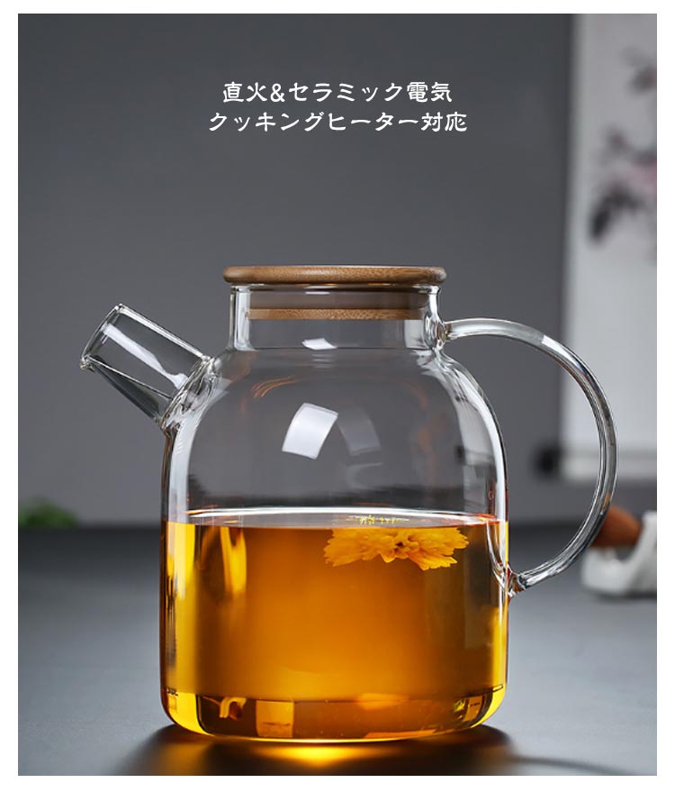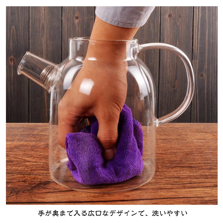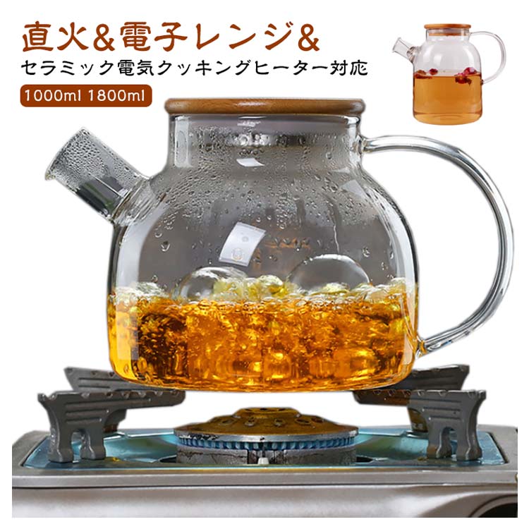 ガラスピッチャー 耐熱 1000ml 1800ml 直火 直火電気ケトル対応 ガラスポット ガラスケトル ティーポット 耐熱ガラス 大容量 ホウケイ酸ガラス ステンレス茶こし一体型蓋 洗いやすい 冷水筒 冷水ポット 麦茶入れ 水だし 紅茶ポット 送料無料