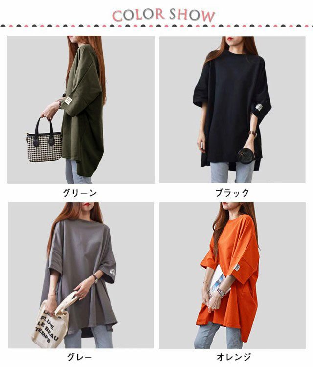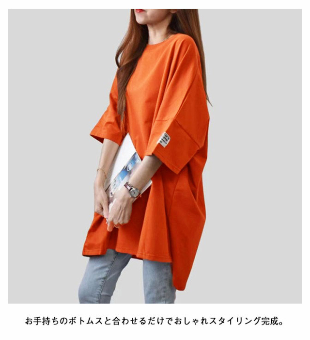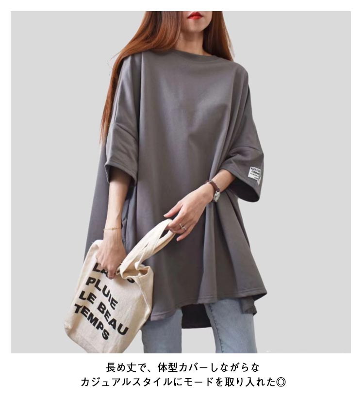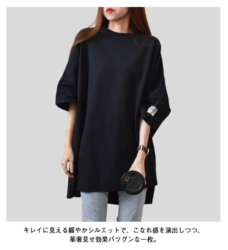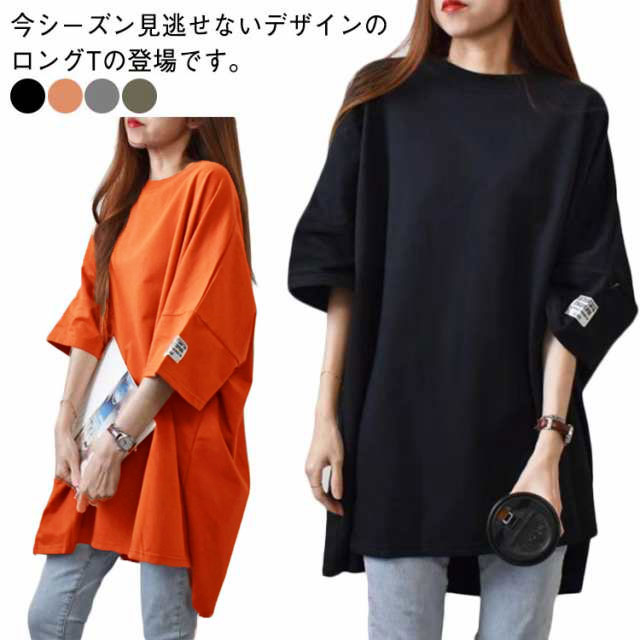 Tシャツ 半袖 ロングTシャツ ゆったり 大きいサイズ レディース 春夏 トップス カットソー ビッグサイズ チュニック おしゃれ プルオーバー 無地 シンプル 体型カバー ママ 母の日 20代 30代 40代 お洒落 送料無料