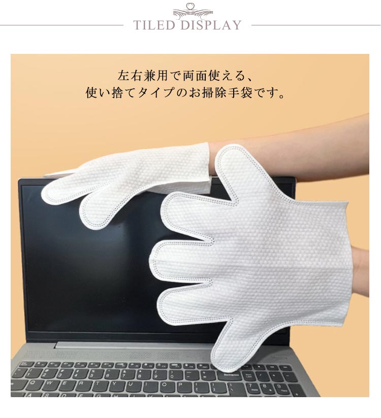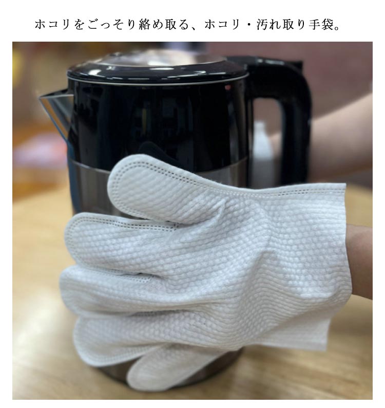 | 【100枚入り】 【手袋型のお掃除クロス】 左右兼用で両面使える、使い捨てタイプのお掃除手袋です。 親指、人差し指、中指が分かれているので細かい隙間も拭きやすい!お掃除しにくい場所も素手感覚でラクにお掃除! ホコリをごっそり絡め取る、ホコリ?汚れ取り手袋。 エアコンや扇風機、コードや車内、パソコンやサッシなど、ほこりが溜まりやすいけど雑巾が使いにくい細かい場所と掃除機が入りにくいすき間に◎ | |