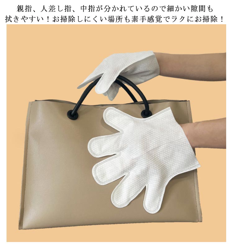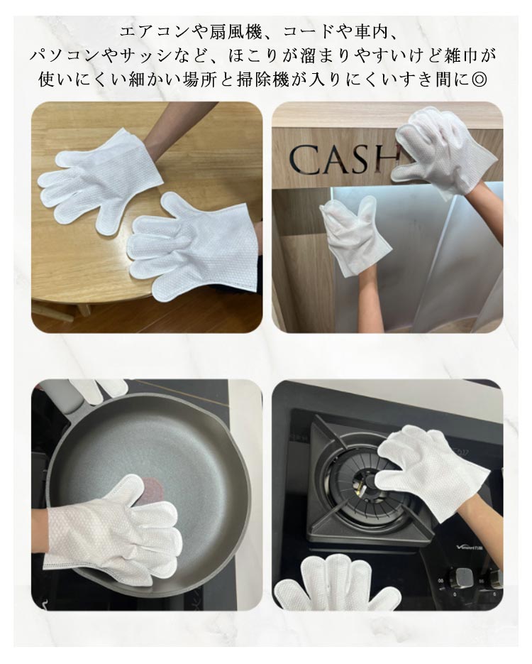 【100枚入り】【手袋型のお掃除クロス】左右兼用で両面使える、使い捨てタイプのお掃除手袋です。親指、人差し指、中指が分かれているので細かい隙間も拭きやすい!お掃除しにくい場所も素手感覚でラクにお掃除!ホコリをごっそり絡め取る、ホコリ・汚れ取り手袋。エアコンや扇風機、コードや車内、パソコンやサッシなど、ほこりが溜まりやすいけど雑巾が使いにくい細かい場所と掃除機が入りにくいすき間に◎