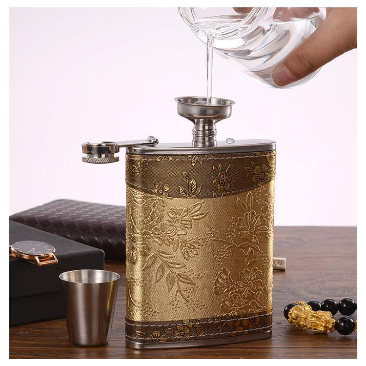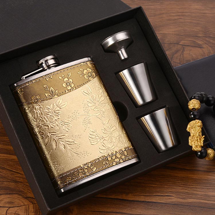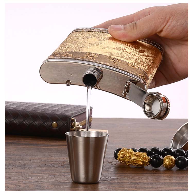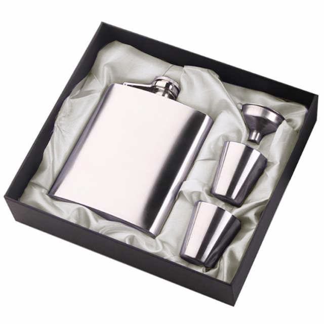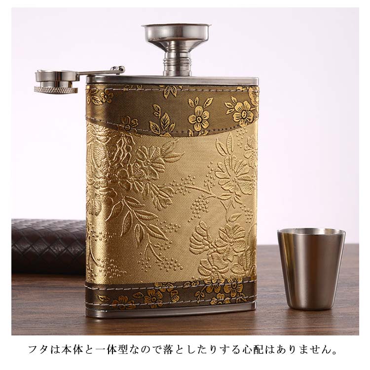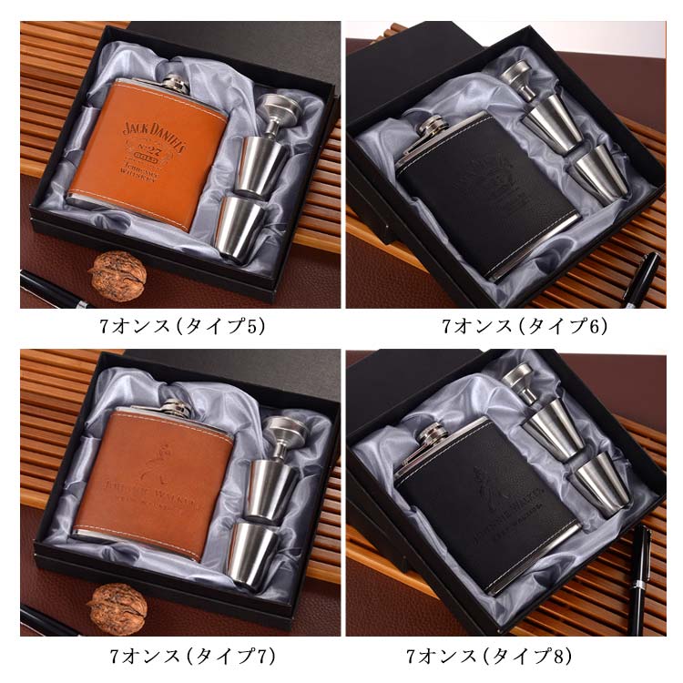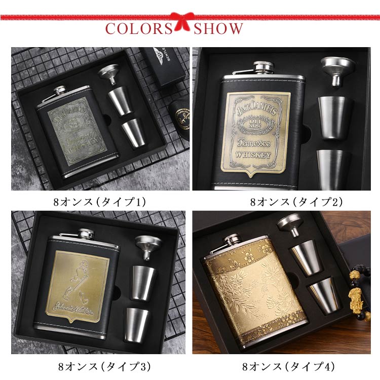漏斗・コップ付き!スキットルボトル 8オンス 4点セットウイスキーなどアルコール濃度の高い蒸留酒を入れる携帯用の小型水筒。専用の漏斗がついているので、スムーズにお酒を注げます。飲み口はソフトな口当たりになるように仕上げています。コンパクトで軽量なので持ち運び便利です。丈夫で劣化しにくく、さびに強いステンレスを使用しています。フタは本体と一体型なので落としたりする心配はありません。付属品にもこだわったセットので、コレクションにもプレゼントにも重宝します。