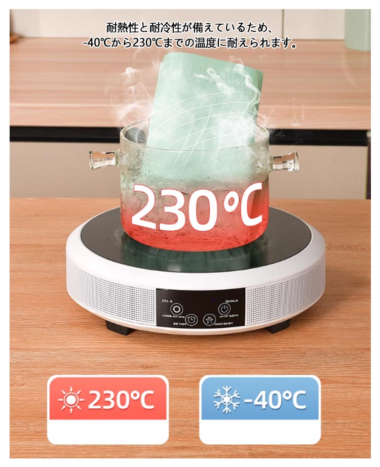 | 快適にお菓子作りやパン作りが楽しめるシリコンマットです。 食品グレードのシリコンから作られて、匂いなし、無毒無害! 耐熱性と耐冷性が備えているため、-40℃から230℃までの温度に耐えられます。 ノンスティック表面なので、粘着性の材料にうまく働けます。 引き裂きにくく、強力な吸着力を持っているので、ピタリと吸着、ズレにくいです。 スケールの目盛りも付いているので、パンやお菓子のサイズを揃えるのも簡単です。 直接水で洗ったり、湿った布で軽く拭くだけで簡単にきれいになります。 折りたたんだり巻いたりしてコンパクトに収納でき、スペースを取らず、繰り返し使用できます。 | |