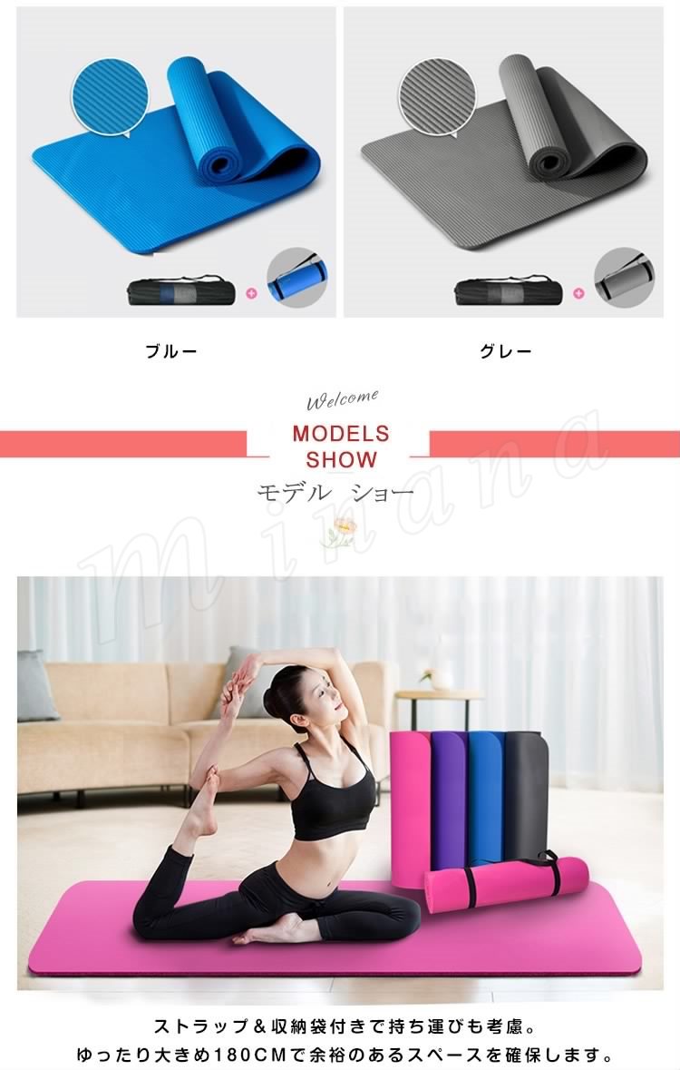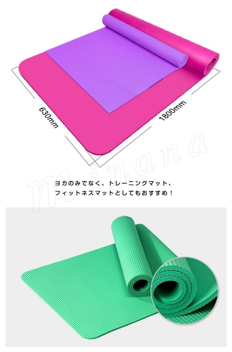 180*63cm 10mm厚みどこでもヨガのプラクティスが楽しめるよう設計された耐久性抜群のヨガマット