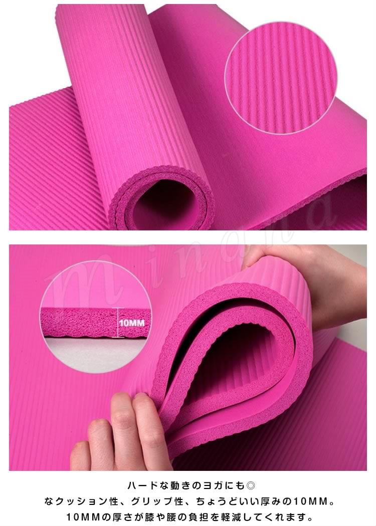 クッション性抜群で衝撃をしっかり吸収。 ヨガマット(ストラップ&収納袋付) 10mm マット ヨガ用 初学者 トレーニングマット エクササイズマット