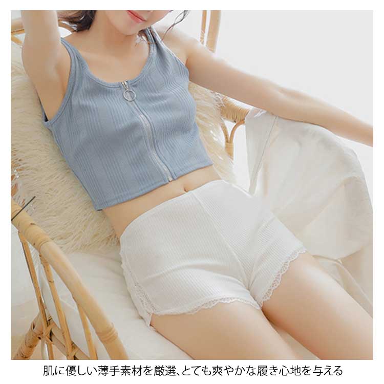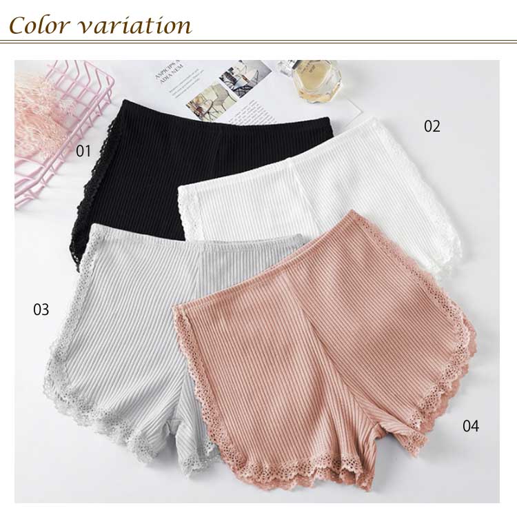 | レディース用のショート丈インナーパンツが登場 肌に優しい薄手素材を厳選、とても爽やかな履き心地を与える スカートの下にこの一枚を履いたら安心感が倍増、ファッションをより気軽に楽しめる レース付きタイプとレース無しタイプに雰囲気異なるカラバリが用意され、お好み次第で選べる | |