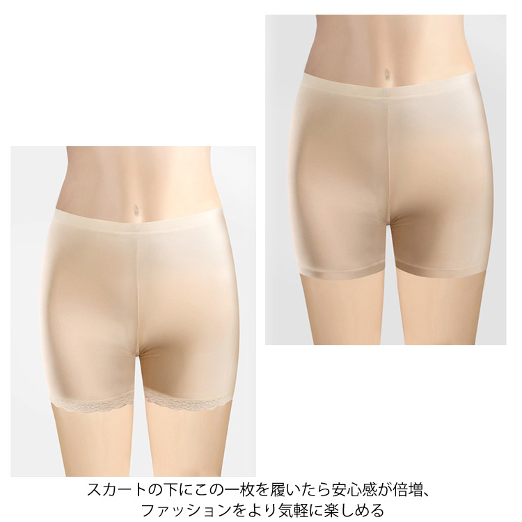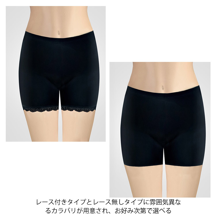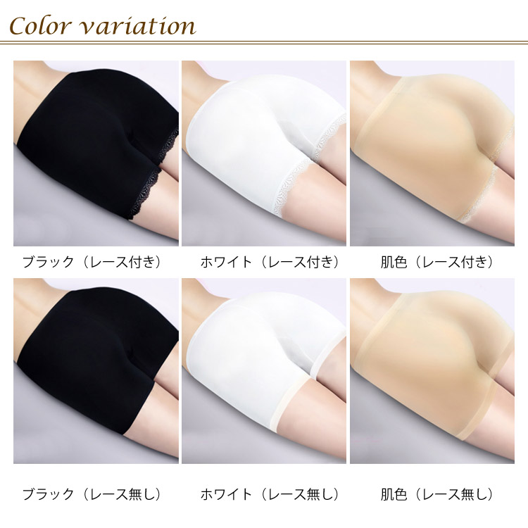 | レディース用のショート丈インナーパンツが登場 肌に優しい薄手素材を厳選、とても爽やかな履き心地を与える スカートの下にこの一枚を履いたら安心感が倍増、ファッションをより気軽に楽しめる レース付きタイプとレース無しタイプに雰囲気異なるカラバリが用意され、お好み次第で選べる | |