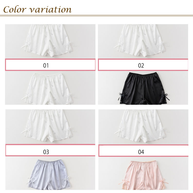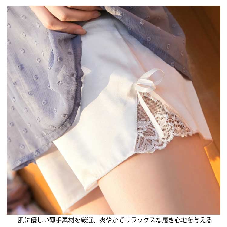 | レディース用のショート丈インナーパンツが登場 肌に優しい薄手素材を厳選、爽やかでリラックスな履き心地を与える 両サイドに蝶結びリボンとレース素材が施されたデザインはとてもキュートなアクセントを付ける スカートの下にこの一枚を履いたら安心感が倍増、ファッションをより気軽に楽しめる 2点1セットとなっていて、豊かな色の組み合わせも用意される | |