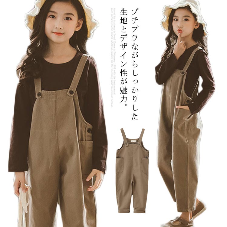 サロペット セットアップ 2点セット 女の子 キッズ ジュニア ゆったり オーバーオール 長袖Tシャツ 無地 シンプル 子供服 春新作 110 120 130 140 150 160