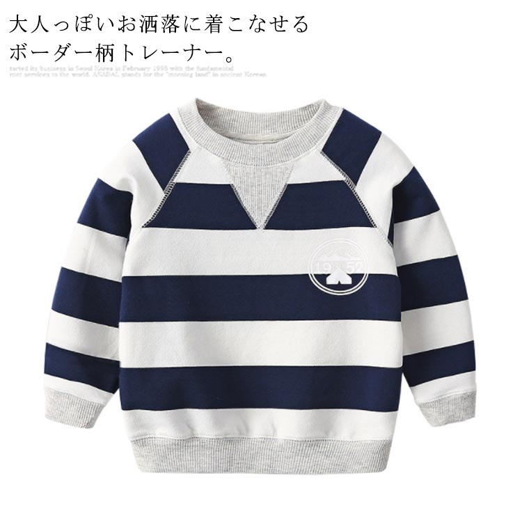 男の子 トレーナー スウェット 送料無料 太ボーダー カットソー 長袖 トップス パーカー クルーネック キッズ 子供服 春秋 90 100 110 120 130 140