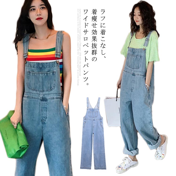 ワイドサロペットパンツ レディース デニムサロペット ロングパンツ 柔らかい ウォッシュ加工 ワイドパンツ ゆったり 体型カバー 着痩せ オーバーオール マタニティ