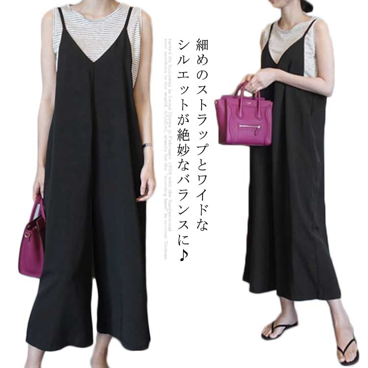 ゆるサロペット ワイドサロペット 送料無料 レディース ワイドパンツ ゆったり 無地 オールインワン Vネック 夏 キャミワンピ 9分丈 マタニティ