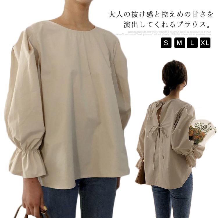 ブラウス 送料無料 レディース ゆる トップス 長袖 無地 パフスリーブ 体型カバー プルオーバー フレア 韓国ファッション カーリー 20代 30代 40代