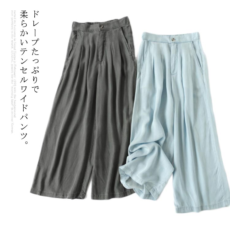 テンセル パンツ ワイドパンツ レディース スカーチョ フレアパンツ 無地 柔らかい 薄手 春 夏 デニムパンツ ドレープ おしゃれ ウェストゴム