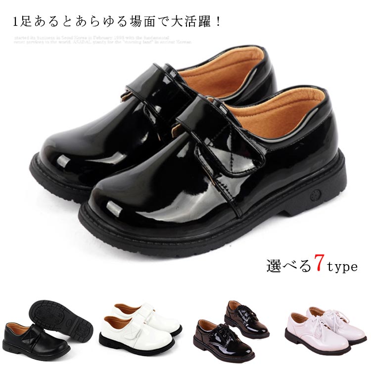 全3タイプ! フォーマルシューズ 男の子 子供靴 フォーマル シューズ レザーシューズ PUレザー エナメル キッズ ジュニア ローファー ブラック ホワイト ピアノ 発表会 法事 結婚式 卒園式 フォーマル靴